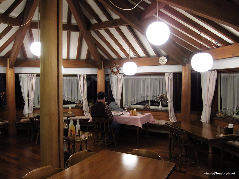 原木打造的餐廳,當晚在民宿用餐的房客只有我們三人