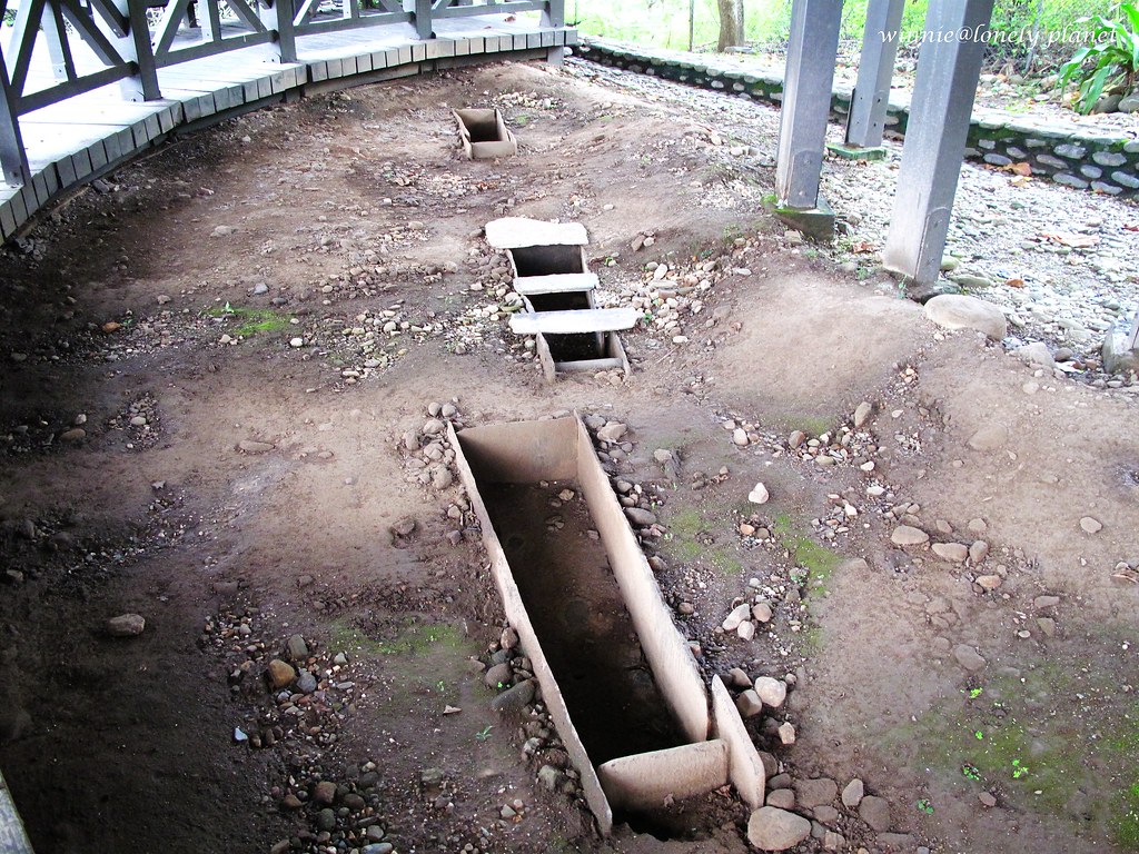 瞭望台下方有3座仿製當時建造瞭望台發現的石板棺