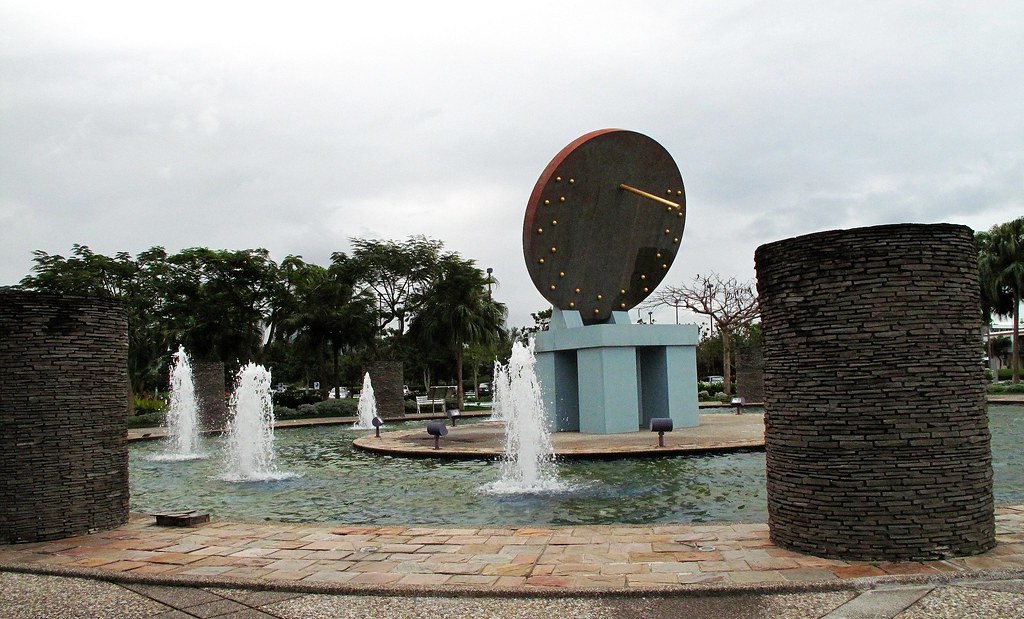 台灣史前文化博物館入口正前方噴水池中矗立著古色古香的青銅日晷,是巨型的古代大時鐘,