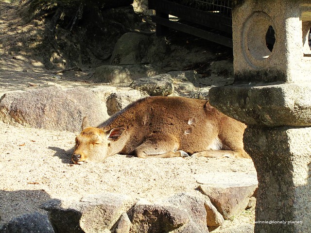 宮島的鹿比較斯文不會像奈良的鹿一直要東西吃