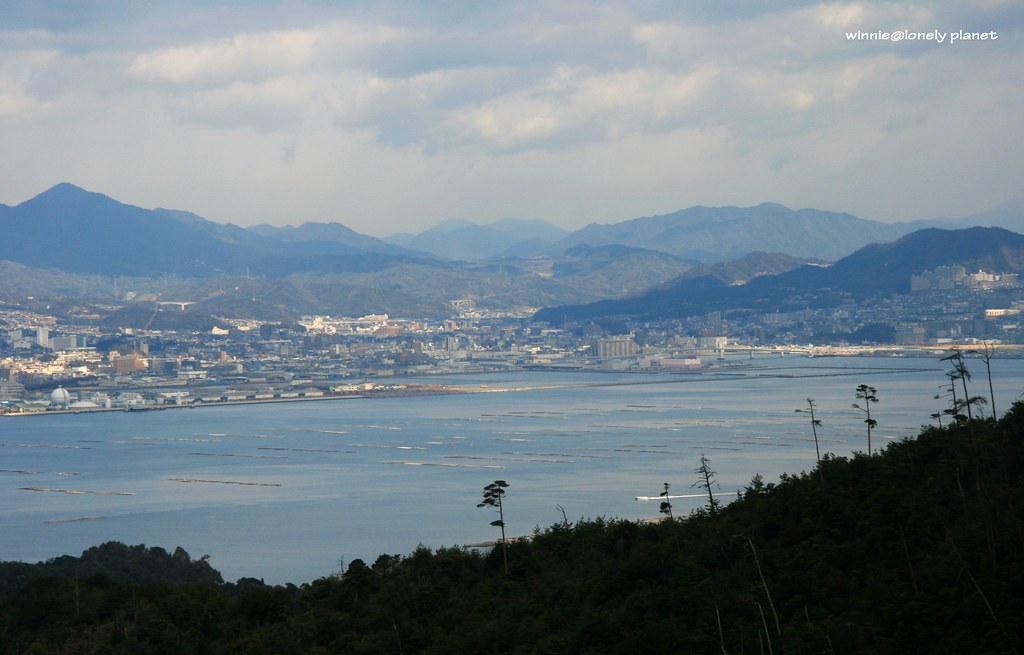 獅子岩站展望台看瀨戶內海,廣島市區依稀可見