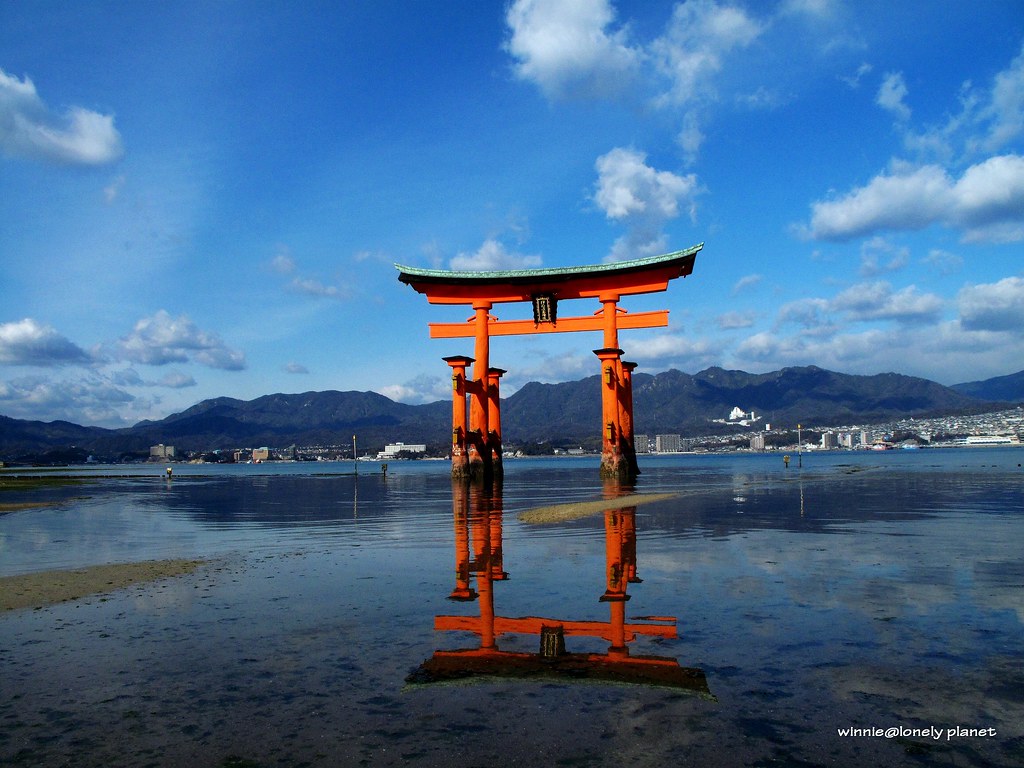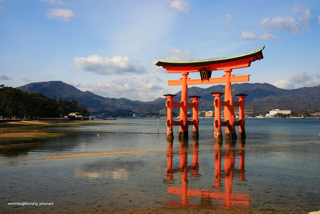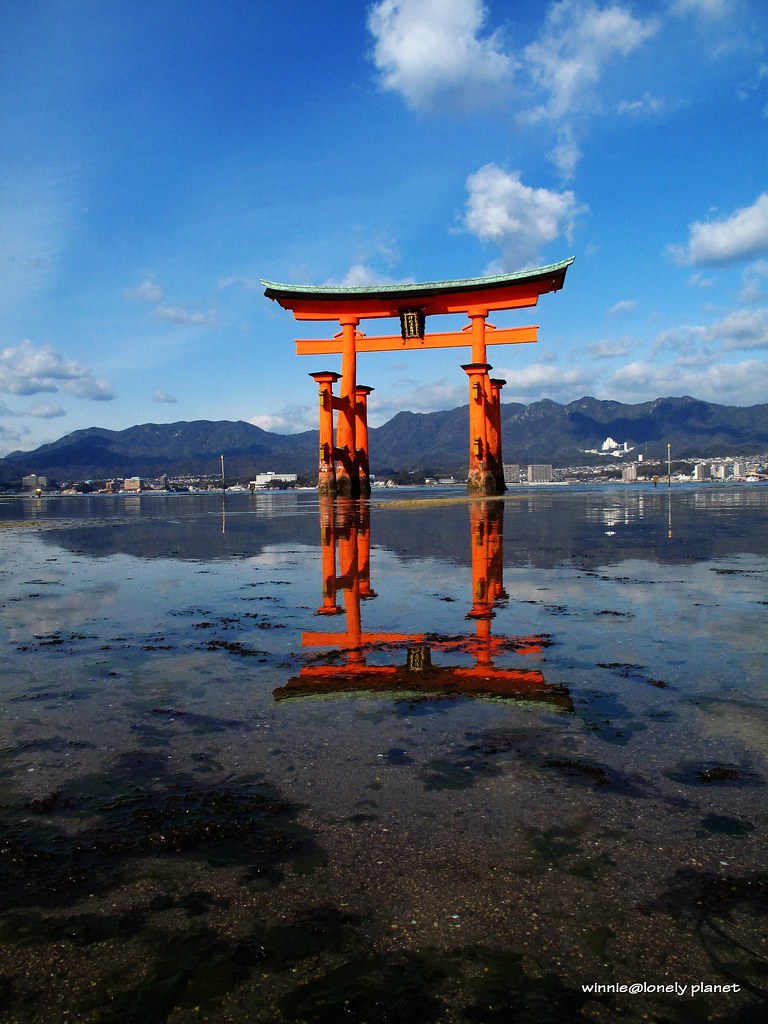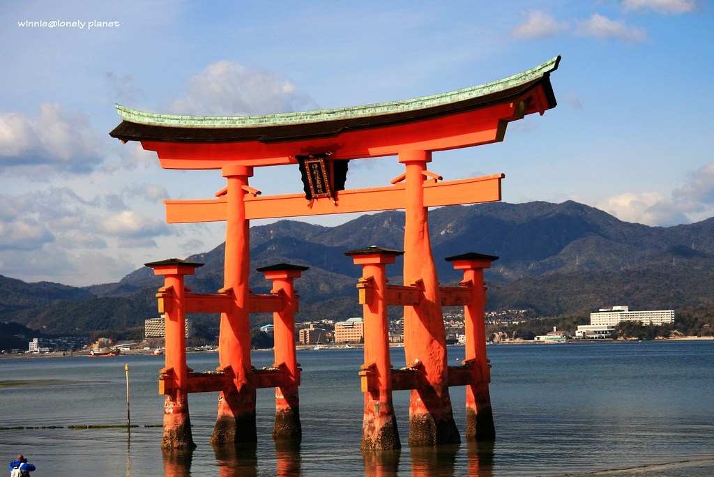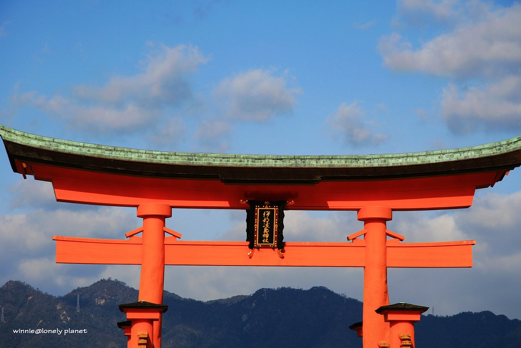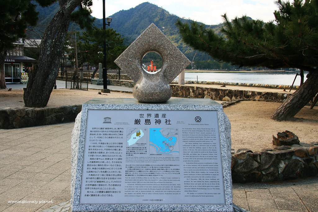 嚴島神社在1996年12月被列入世界遺產,這個紀念碑非常特別,從孔中可以看見大鳥居