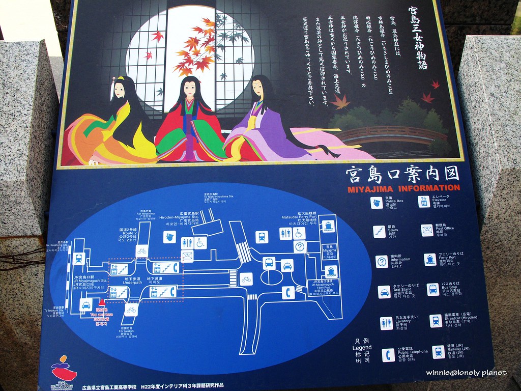 左:抵達JR宮島口站了 右:濃濃平安風的案內圖