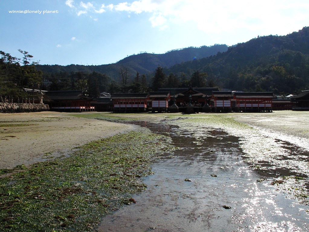 當天早上是8:54退潮,我們9點半到,剛好錯過潮水全退、在大鳥居下漫步的機會