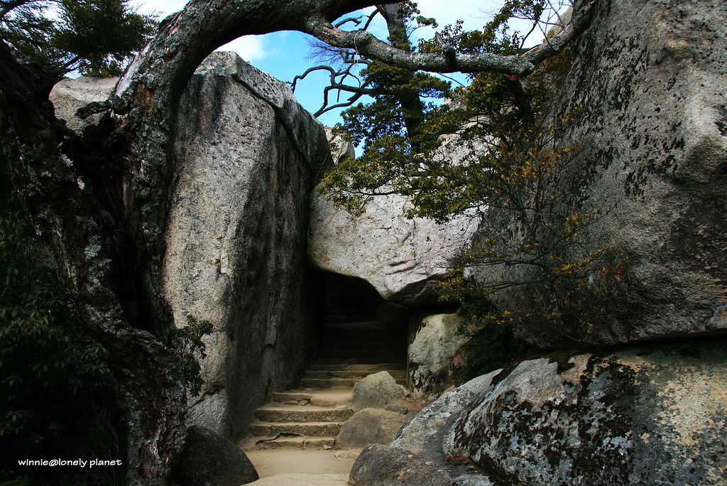 穿越這些奇岩巨石就會到彌山頂