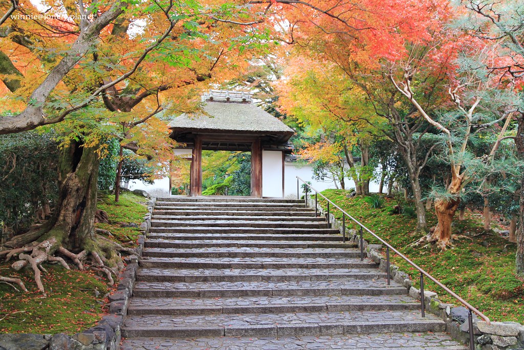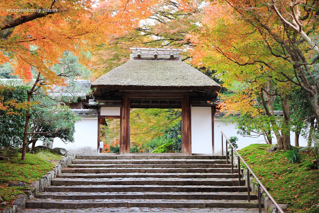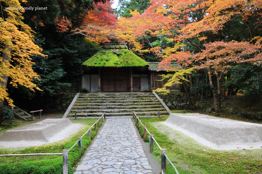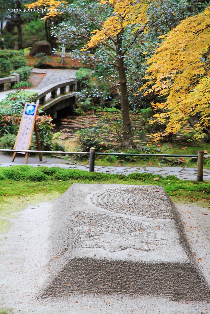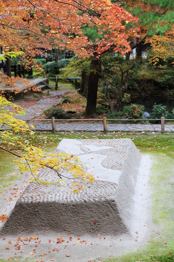 踏入山門就可以看到兩側精心打造的白砂壇,穿越砂壇間的通道,代表著潔淨身心來到淨域。紅葉掩映中的白砂壇,散發既神聖又美麗的氛圍,我在它四周徘迴流連,直到山門關閉才不捨離去。
