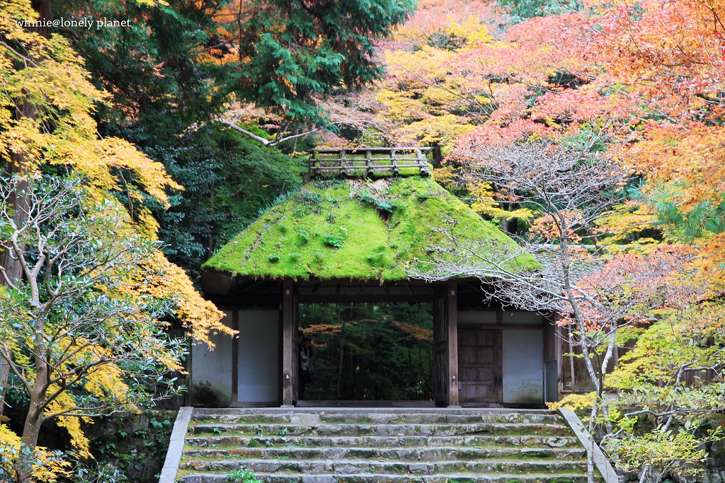 苔蘚覆蓋了整片山門屋頂,彷如古畫