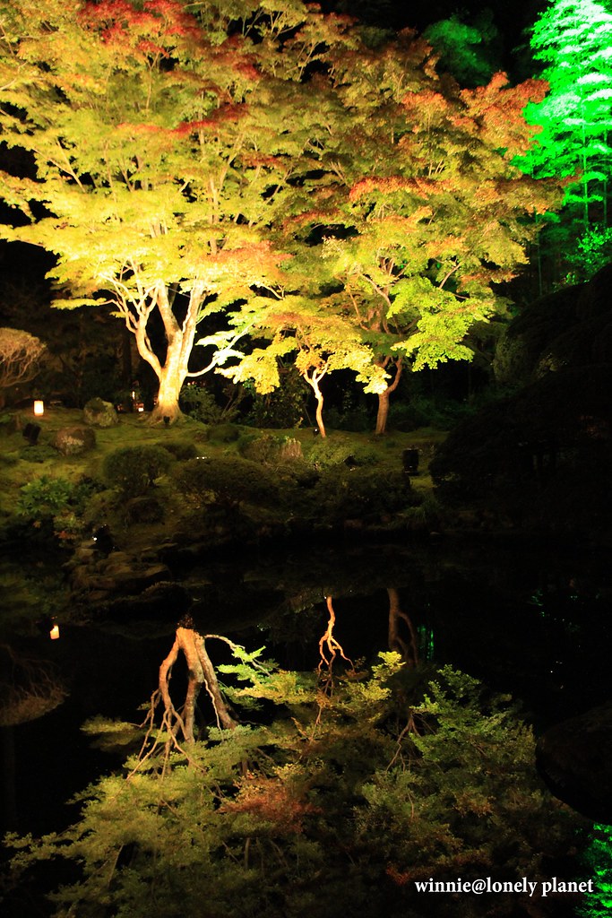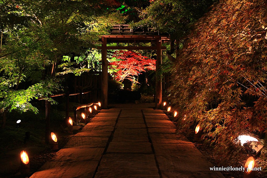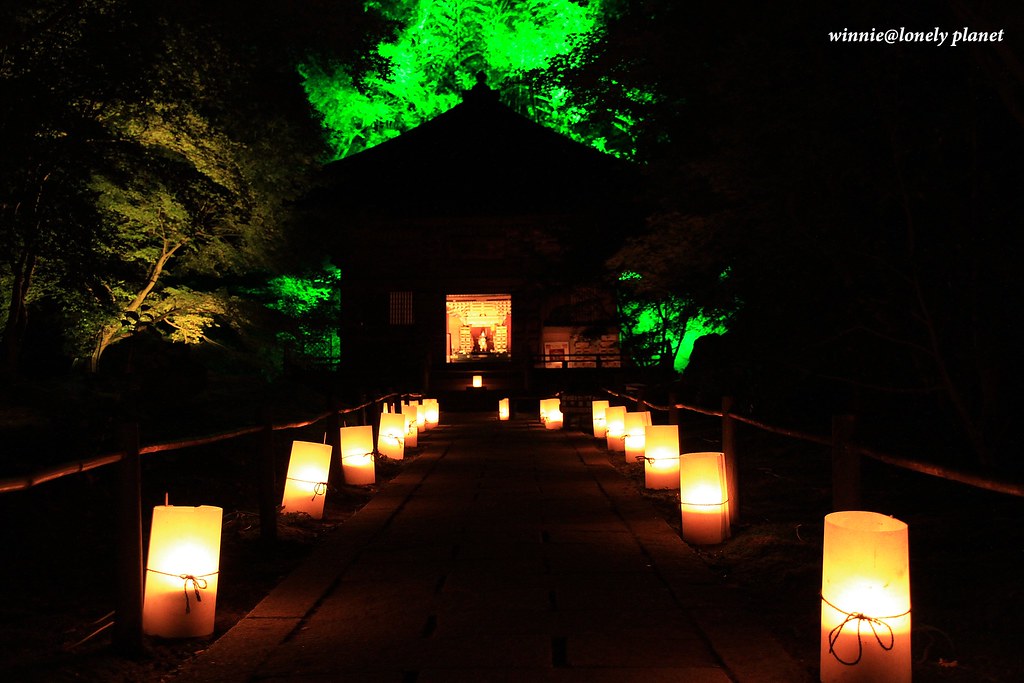 這場名為「松島紅葉ライトアップ2012」的秋夜饗宴,以円通院庭園的紅葉為觀賞重點,搭配瑞巌寺洞窟群、比翼塚、三聖堂、天麟院、観瀾亭,在各色燈光巧飾下,原本沉睡的闇夜醒了過來,在涼爽清澈的空氣中營造出玄妙深奧的氛圍。