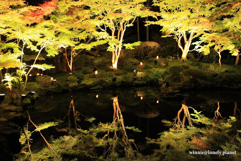 円通院的白天如夢似幻,有著遠離凡塵的清新脫俗。晚上景觀雖然截然不同,同樣散發淨土般的莊嚴與靜謐,令人目眩神迷。