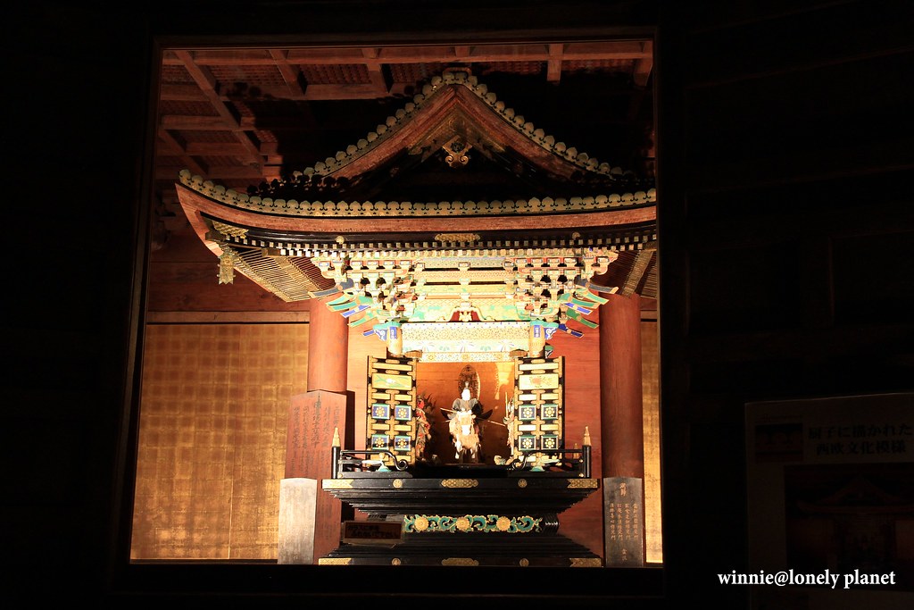 神龕上雕刻支倉常長從西歐帶回來的玫瑰、水仙、十字架、撲克牌紅心黑桃鑽石等圖案,