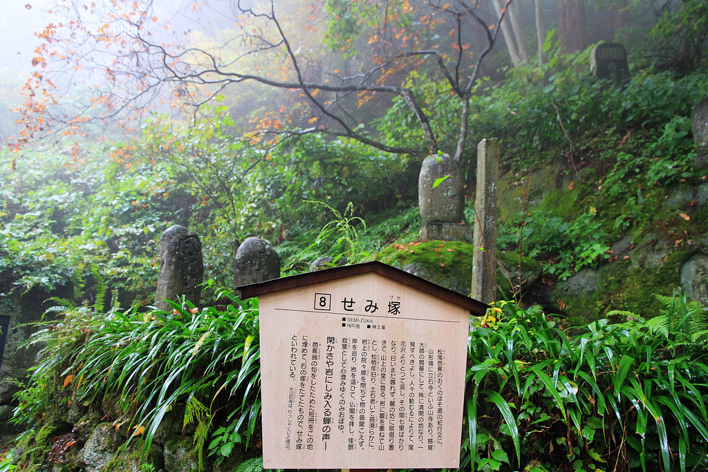 せみ塚(蠶塚):據說寫著芭蕉俳句「閑さや岩にしみ入蝉の声」的短冊就埋在這裡