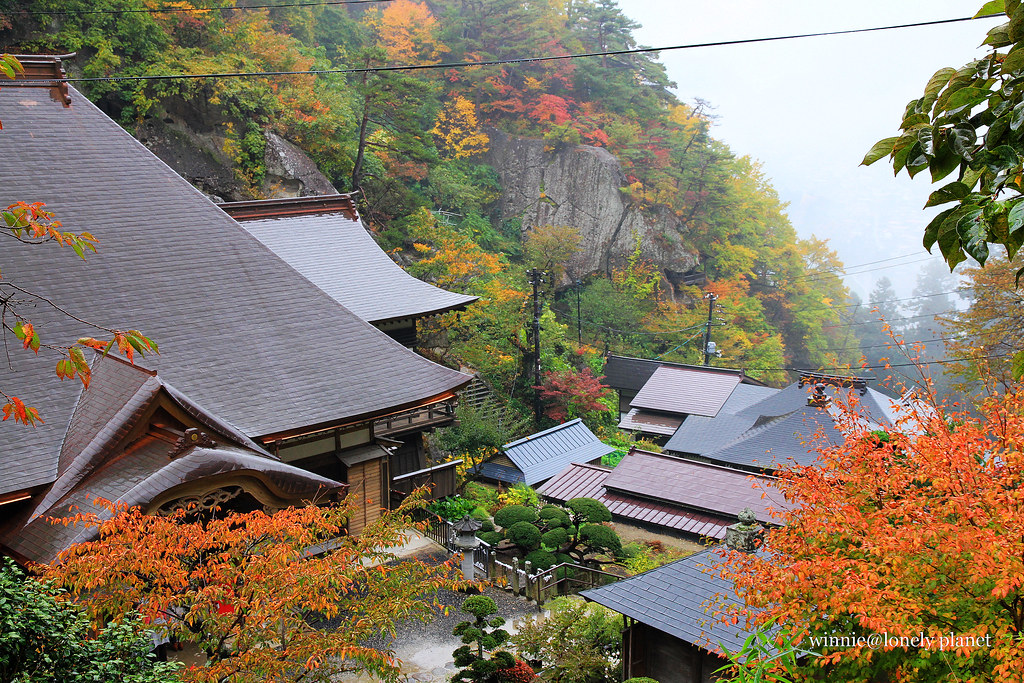 山寺位於山形縣,正式名稱是寶珠山立石寺,因為整座寺院的堂宇都沿著寶珠山嶙峋崖壁而建。平安時期慈覺大師致力於東北地區弘法,西元828年創建松島瑞巖寺後,西元860年奉清和天皇敕願開山創建山寺,成為比叡山延曆寺別院。鎌倉時代全盛期占地百萬坪,山上山下三百多座寺坊,成為東北佛教界中樞。可惜室町幕府末期悉毀于兵燹,直到江戶時代才逐漸復興。現在的山寺境內還廣達35萬坪,不但是日本山岳佛教靈場的代表,更是賞楓勝地,四寺迴廊官網上清麗的秋景,令我朝思暮想。