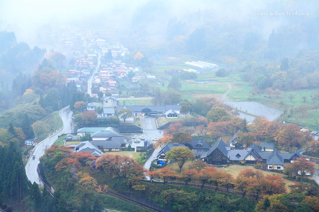 登上五大堂展望台俯瞰前方,靄靄烏雲籠罩整座村鎮,別有一番風情