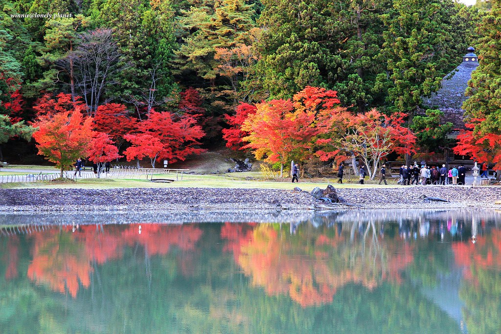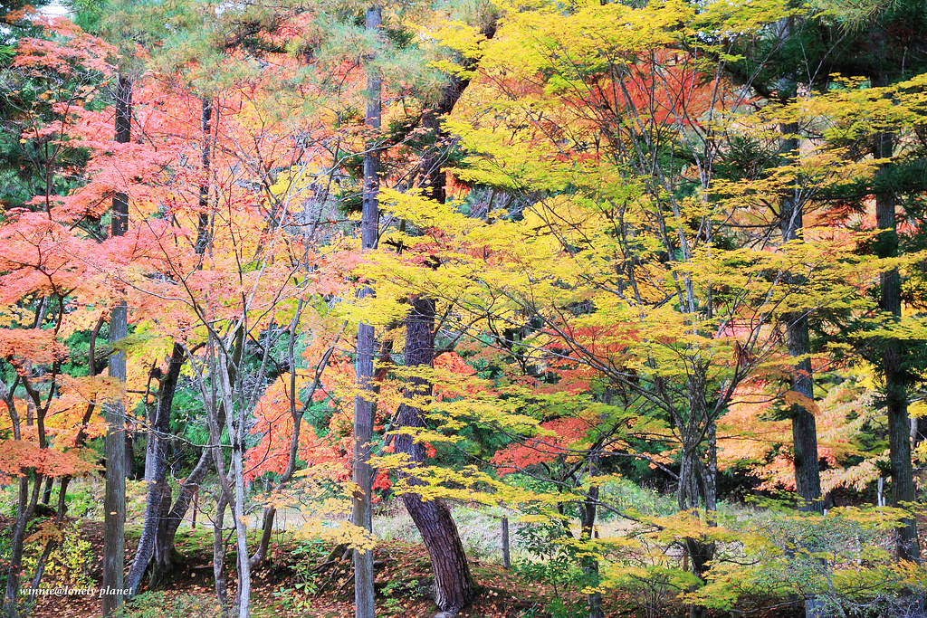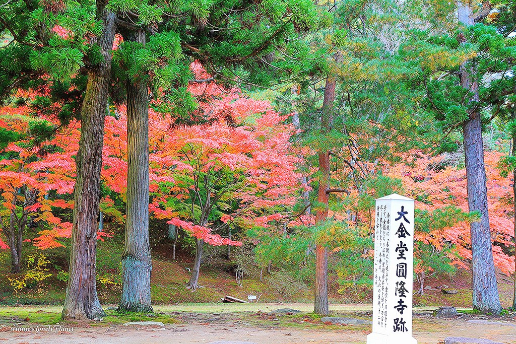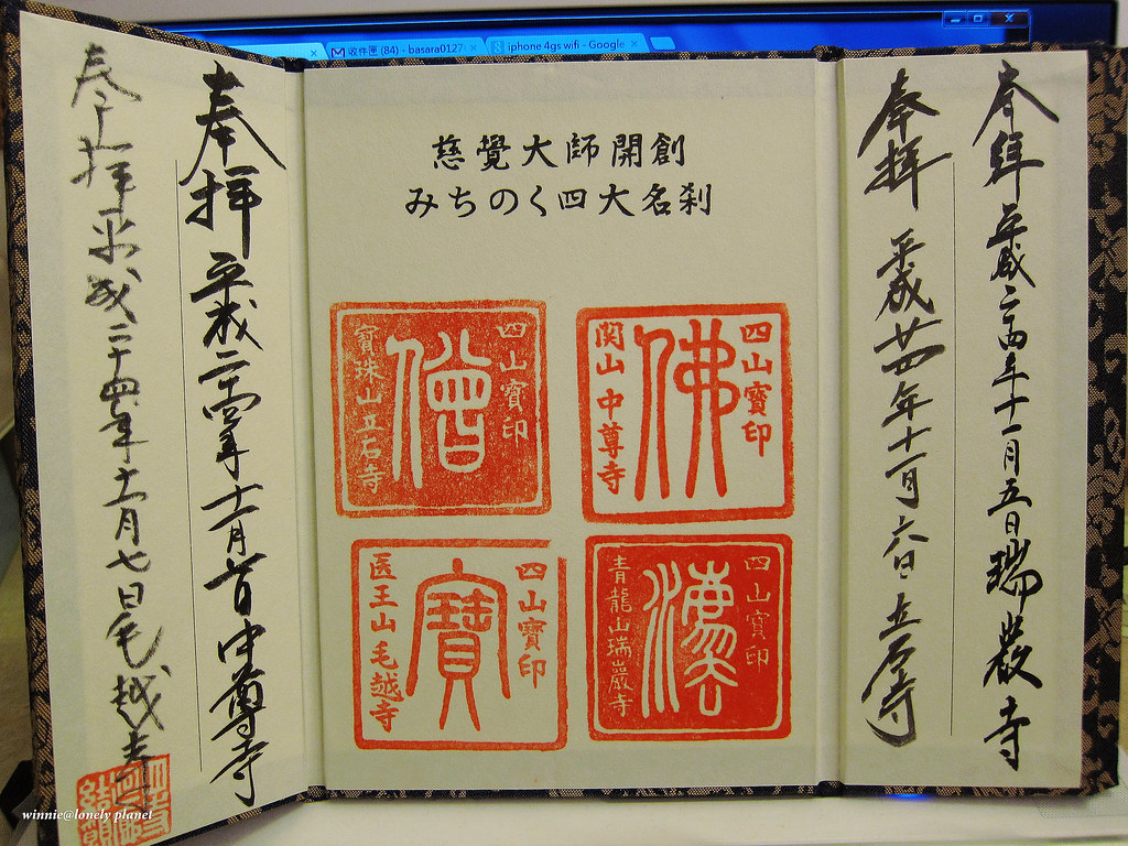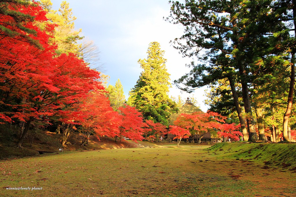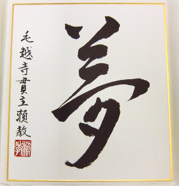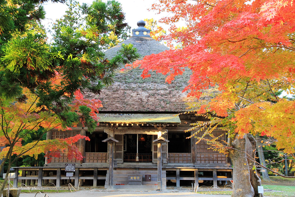 走進毛越寺山門,若隱若現的秋陽,遍灑柔和光芒,漫步大泉池畔,緋紅楓葉與蓊鬱蒼松為柔美泉池增添幾許艷麗。雖然史籍記載的壯觀華麗只能從一處處遺跡想望,優美庭園造景還是能讓人感受淨土般的祥和平靜。來到御守札所請住持幫我蓋下第四顆朱印,遞還朱印帳同時,他交給我一份以精美和紙包覆的紙卡,打開一看,蒼勁有力的『夢』字!原來當四寺迴廊結願完成,最後一間寺院會贈予一字,毛越寺『夢』、中尊寺『尊』、山寺『忍』、瑞巖寺『鼎』,想蒐集四字就要來四趟巡禮