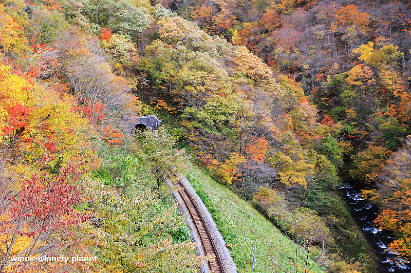 對面就是陸羽東線鐵道和剛剛待過的「鳴子峡レストハウス」見晴し台,光這景色我就狂按快門