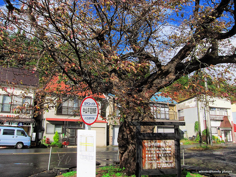 繼續走國道到中山平温泉站,站前的大櫻花樹