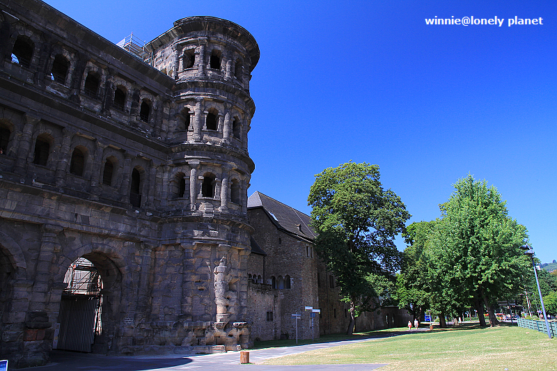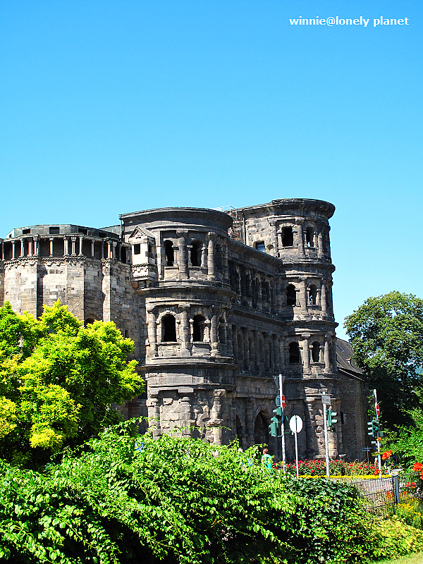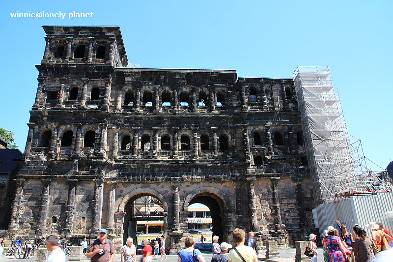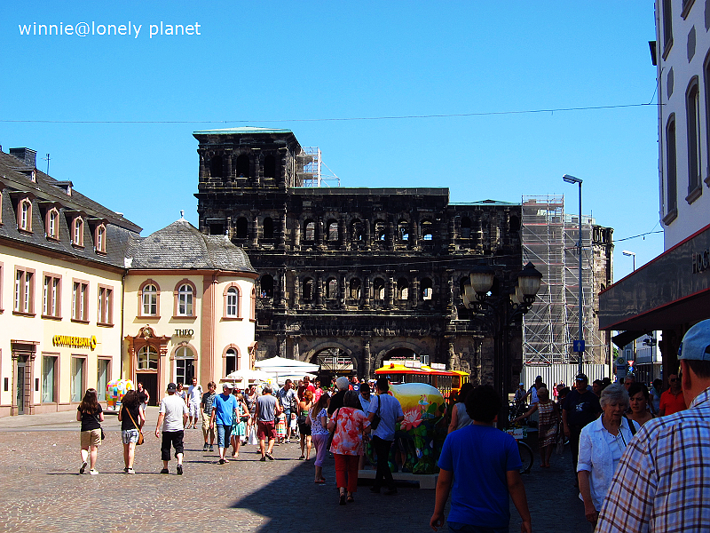 特里爾不大,景點大多集中在中央車站和摩塞爾河之間,雖然都在徒步範圍內,一天可以走完,但是大熱天全部逛一圈會累死人,加上我們在特里爾只能停留4小時左右(當天要趕去海德堡),所以精挑細選幾處世界文化遺產一遊,包括尼格拉城門(Porta Nigra)、凱撒浴場(Kaiserthermen)、君士坦丁大帝加冕教堂(Konstantin-Basilika)、特里爾大教堂(Trierer Dom)和聖母升天教堂(Liebfrauenkirche)。儘管很多人專程來看馬克思故居,我們還是以古蹟為主。