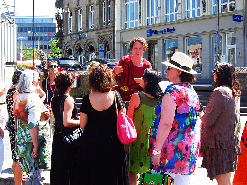 廣場上一名古羅馬扮裝的男子正即興表演,逗得這些歐巴桑樂不可支