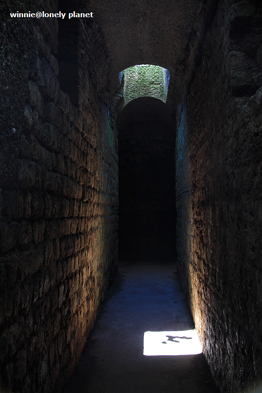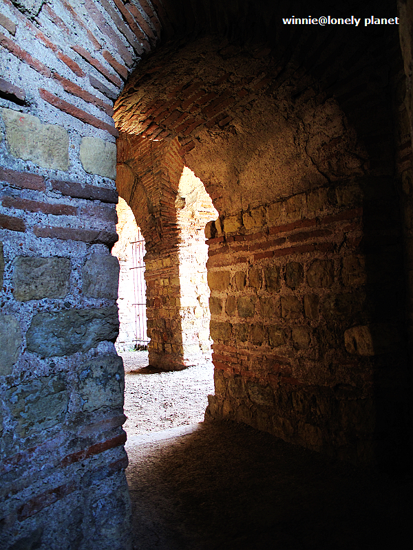 我們漫步在比裝設空調還涼爽的地道中,陽光從殘垣縫隙中照入,營造出如夢似幻的古老氛圍。儘管表面上羅馬文化已經沉寂漫漫千年,其實他們在建築、藝術、工程、法律、政府及許多方面都為世界奠定不朽基石,想想還真是不勝唏噓。