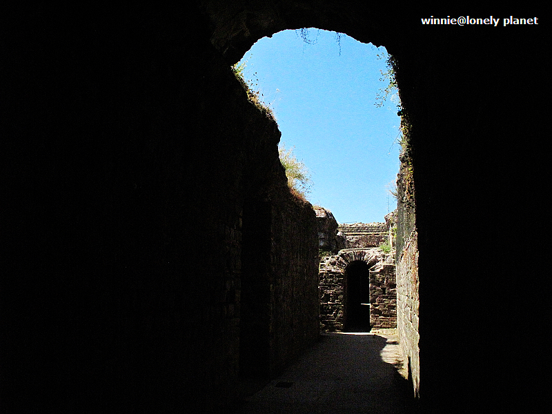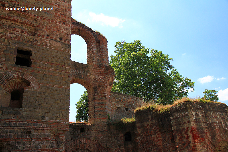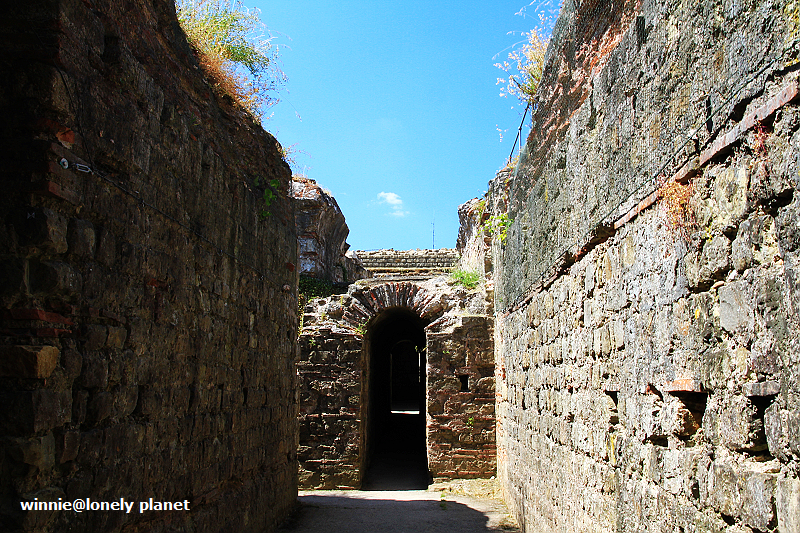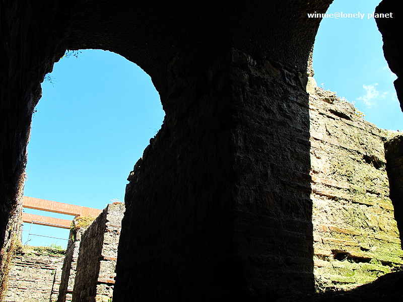 從入口售票處可以看到遼闊的凱撒浴場,我看四處搭鐵架而且沒甚麼樹蔭,頓時興致全失,因為正午大太陽下走好久熱爆了,不想再進去曬太陽,就叫小牛自己買票入場,懶惰的我在外面樹蔭下乘涼。20分鐘後,小牛跑出來揮手叫我:哇,裡面的地道比吹冷氣還涼快!真的嗎?我狐疑的問。他一再保證,我也心動了,剛好休息得差不多,就買票進場吧。