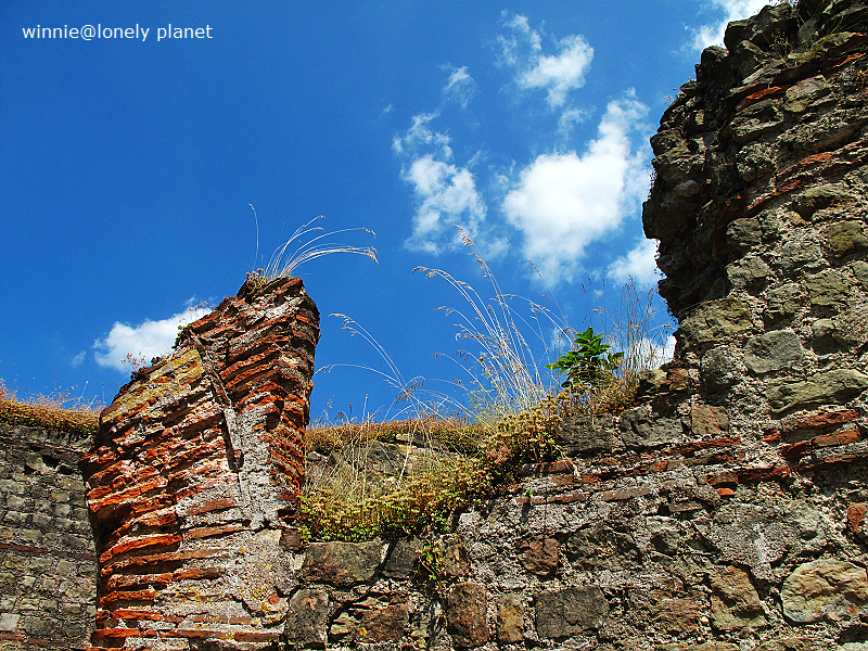 踏入凱撒浴場(Kaiserthermen),突然想起這首詩。歷經千年淬煉的樑柱牆垣,伴隨著蔓生芒草,在正午炙熱陽光照射下,反射出炫目光芒。光影交錯呈現的美感,令人動容,歷史不曾逝去,依舊活生生地存在。
