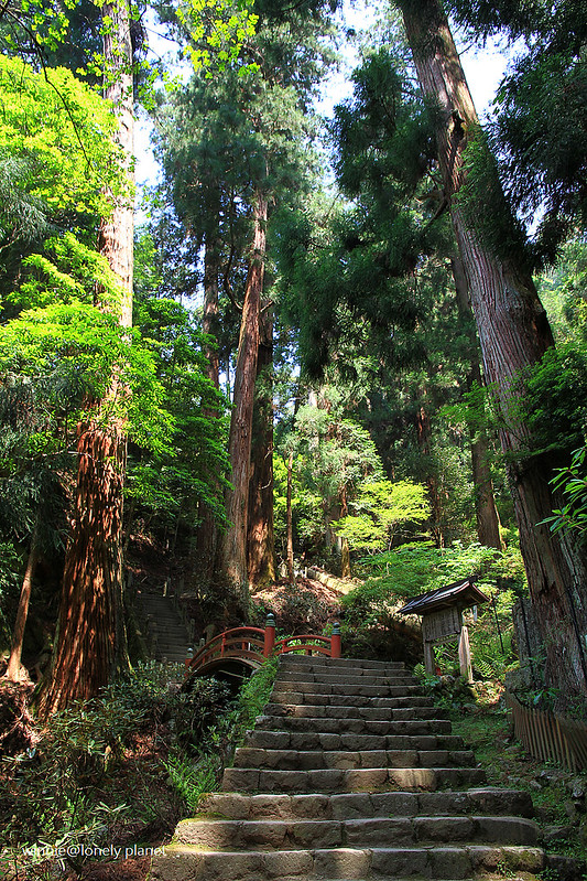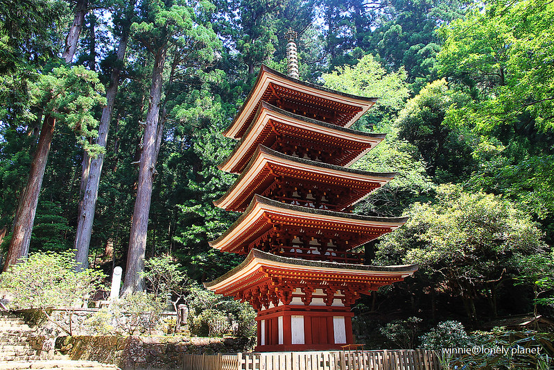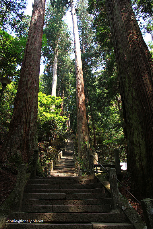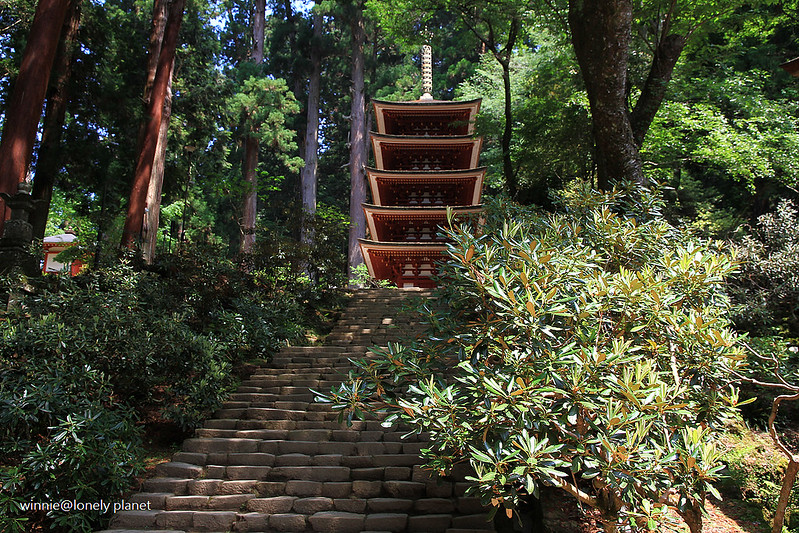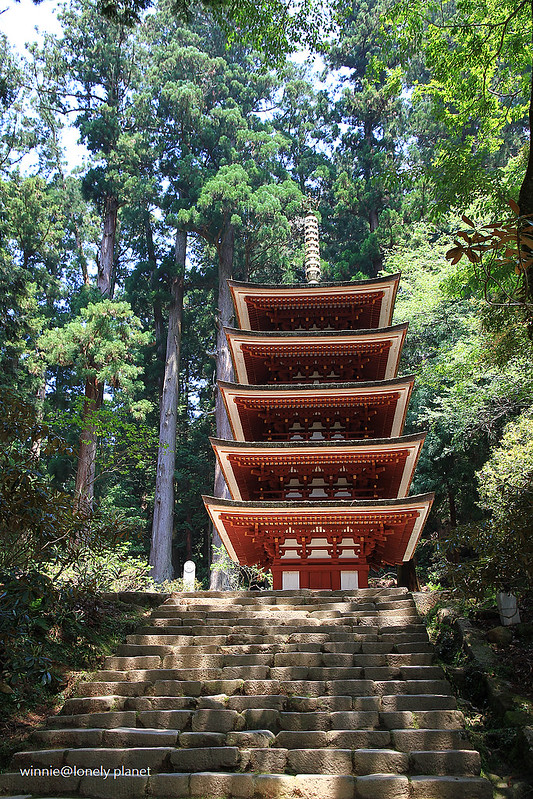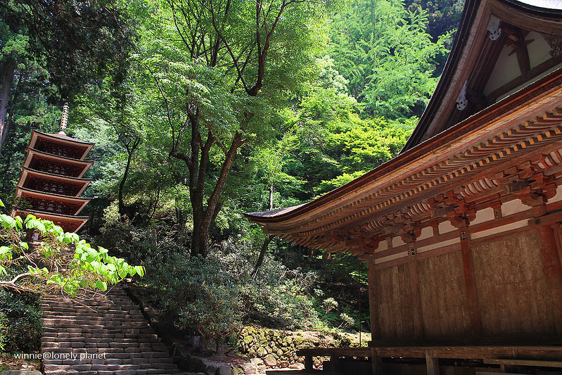 從灌頂堂左側登上石階往上走,就可以看到室生寺地標「五重塔」矗立在參天杉木林中