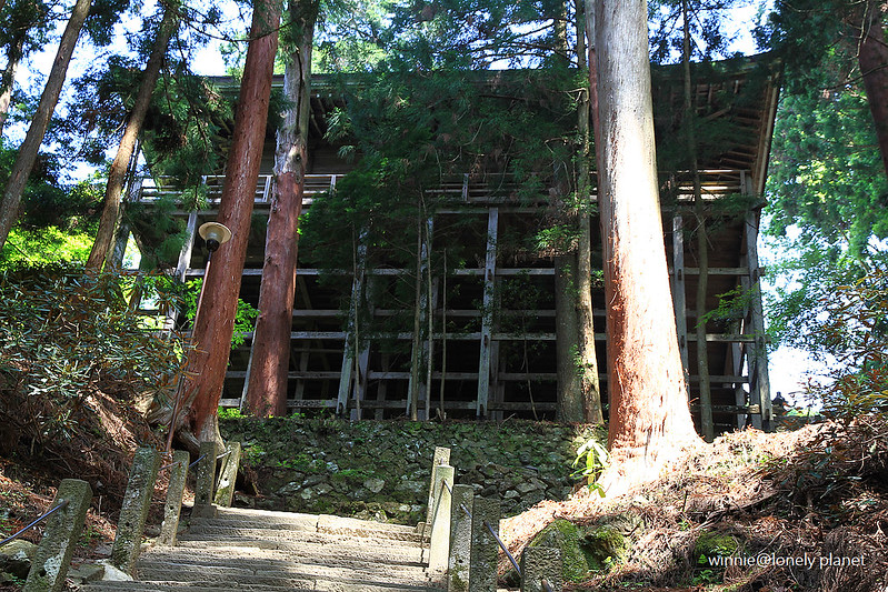 略帶圓弧型的厚重石塊所形成的石階,散發莊嚴氛圍,有如引領人們走進淨域的聖道,鎧坂終點是國寶金堂