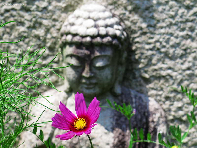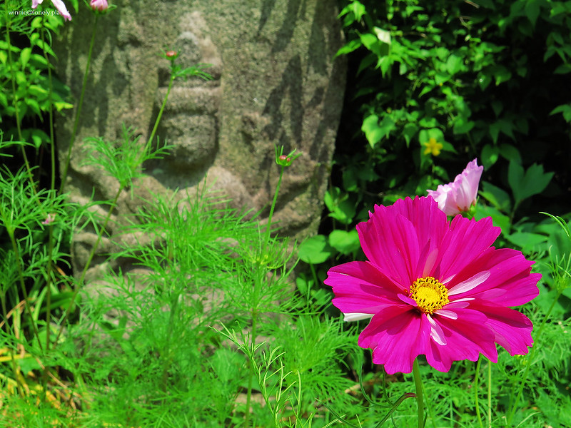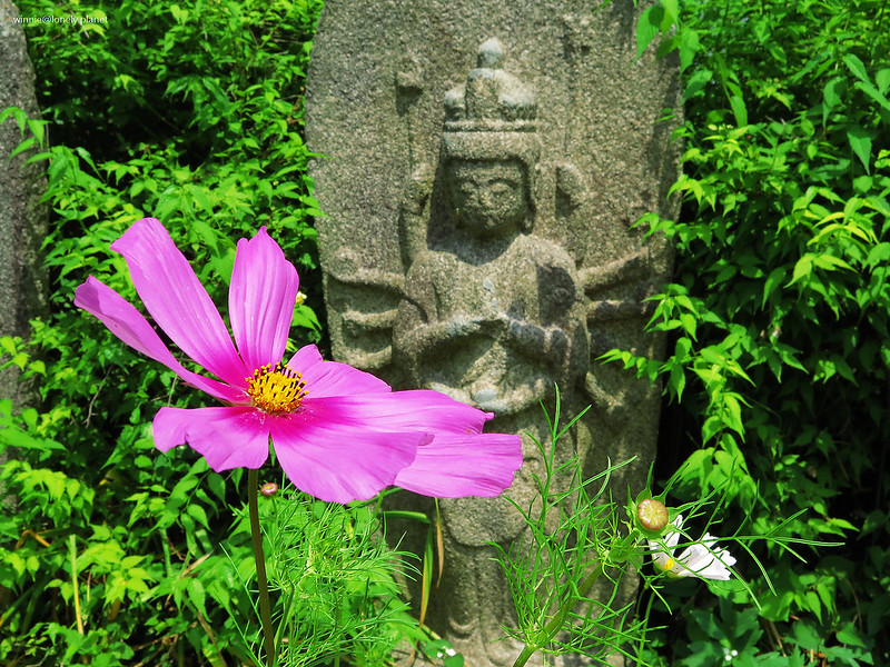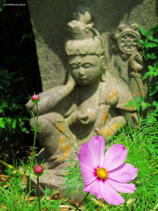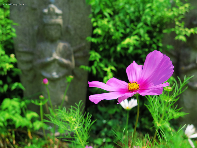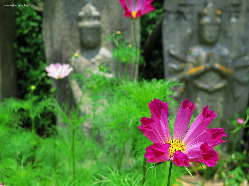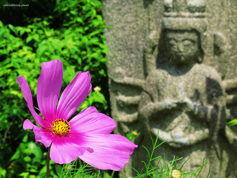 般若寺寺域不大,走走逛逛大約半小時就可以繞完,可是我竟然在氣溫30度的正午豔陽下待了2小時之久,初綻的波斯菊與表情姿態各異的石觀音,描繪出一幕幕旖旎畫面,為歷盡世事興衰的千年古寺,帶來無窮無盡的盎然生機。