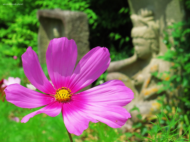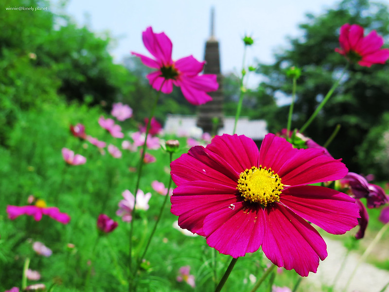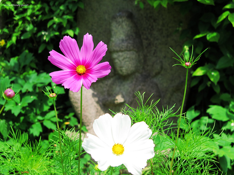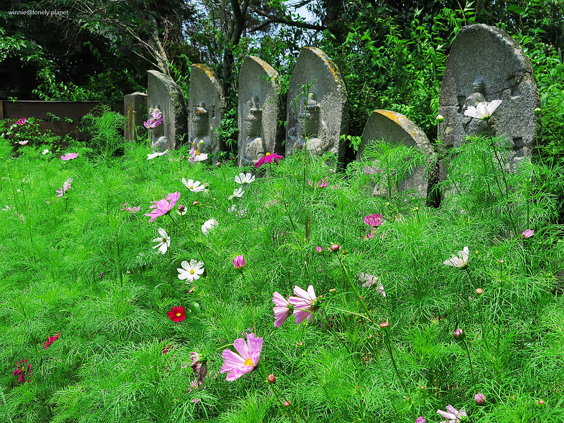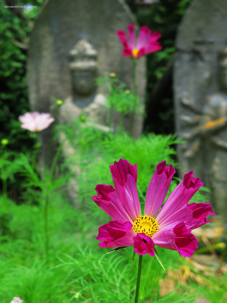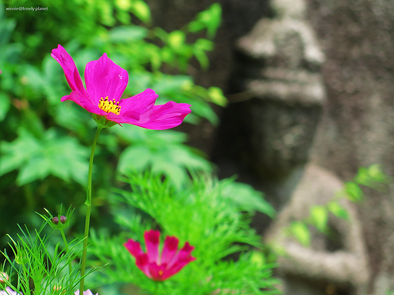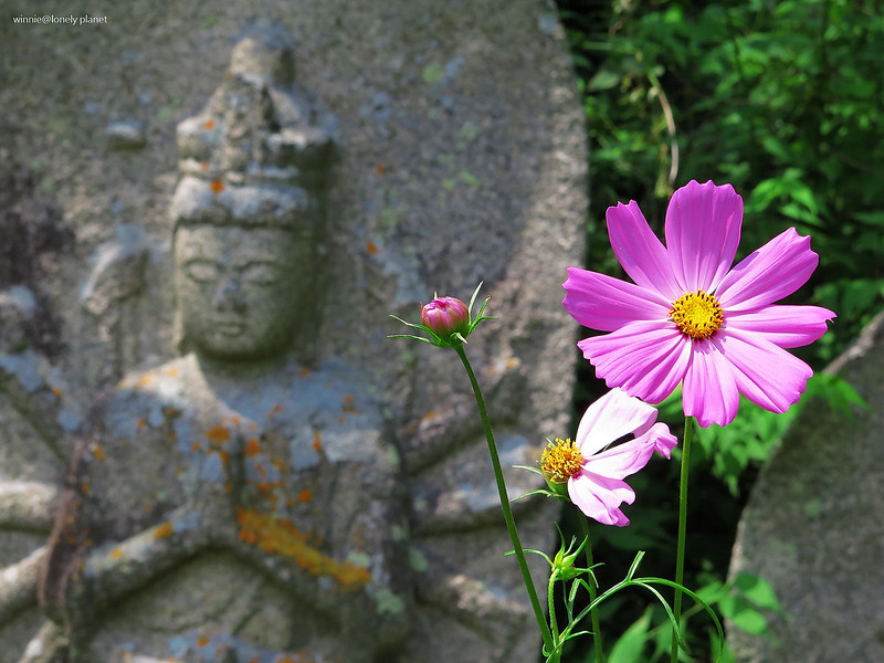 般若寺寺域不大,走走逛逛大約半小時就可以繞完,可是我竟然在氣溫30度的正午豔陽下待了2小時之久,初綻的波斯菊與表情姿態各異的石觀音,描繪出一幕幕旖旎畫面,為歷盡世事興衰的千年古寺,帶來無窮無盡的盎然生機。