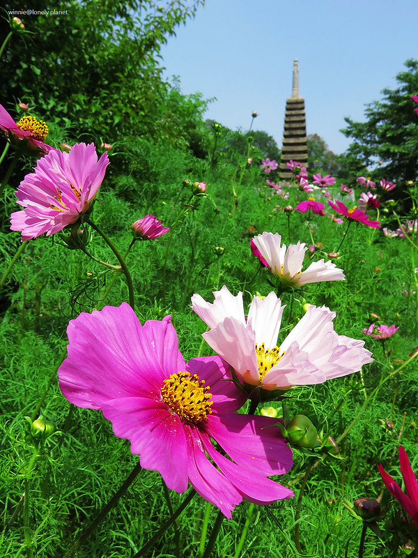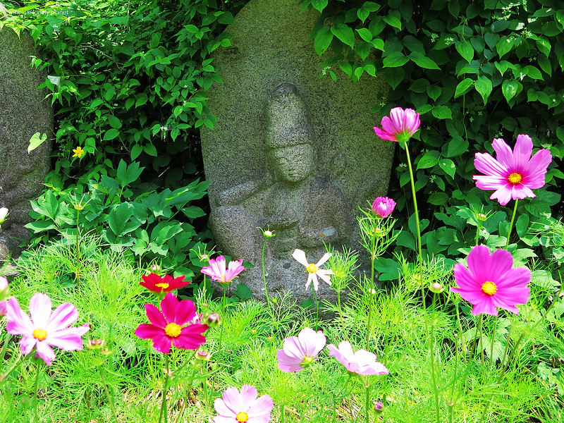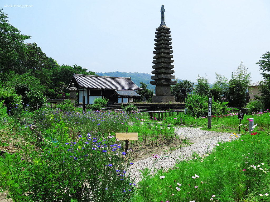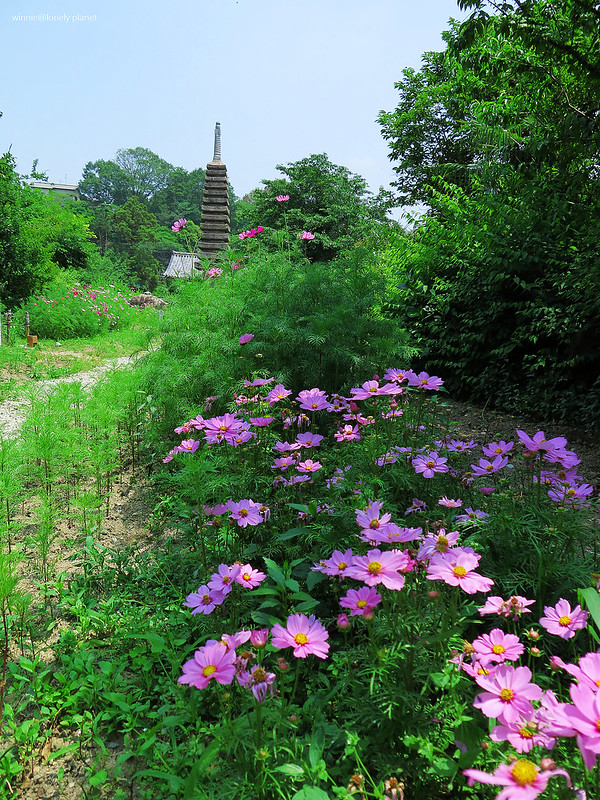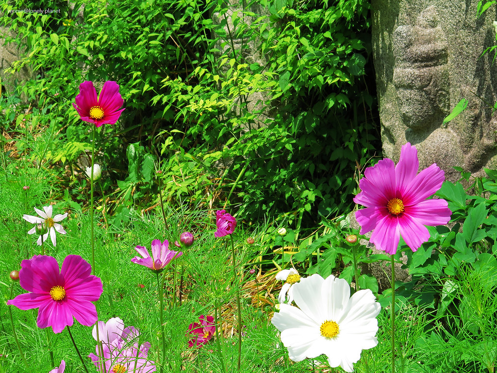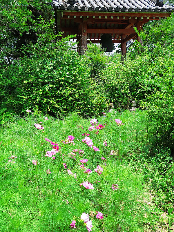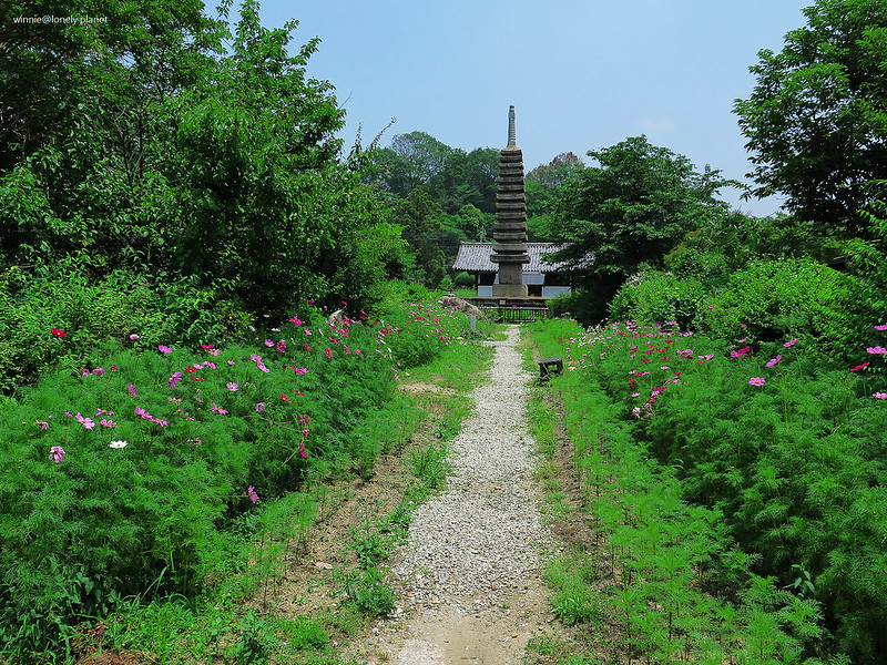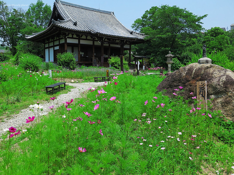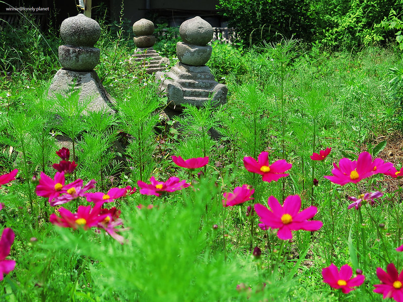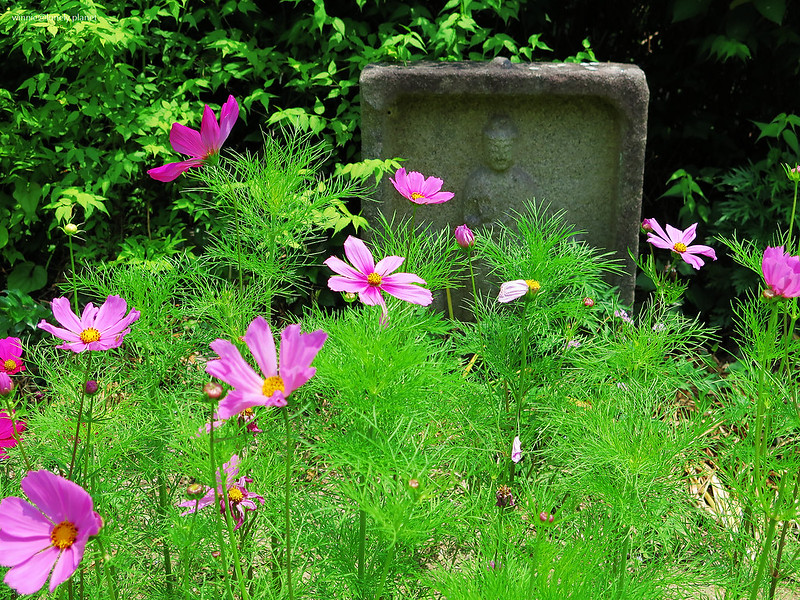 5月下旬開始,般若寺境內的波斯菊會陸續開花,盛開則在9月下旬。5月底去雖然遇不到盛開美景,我還是想看看初綻波斯菊妝點佛像的風情。