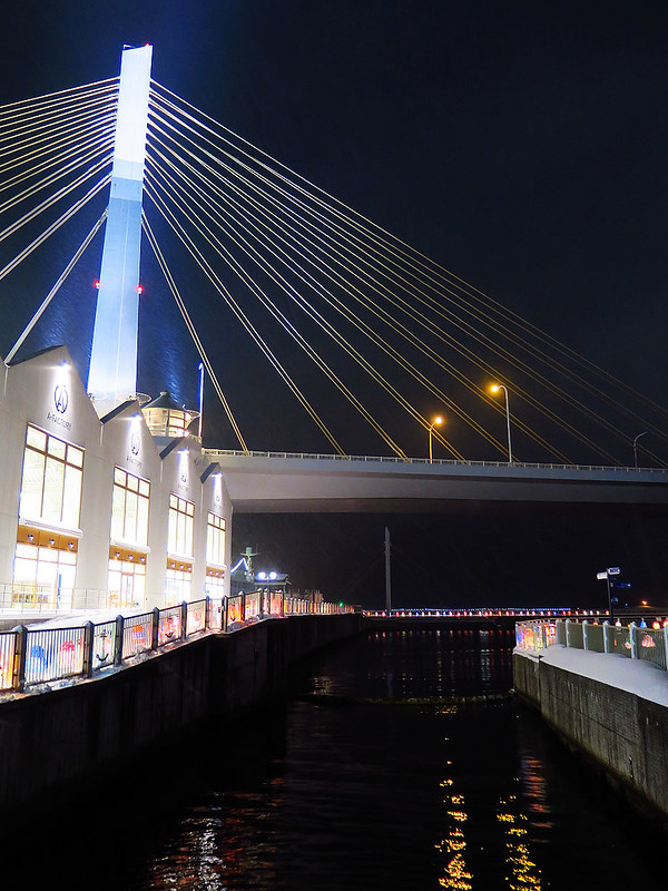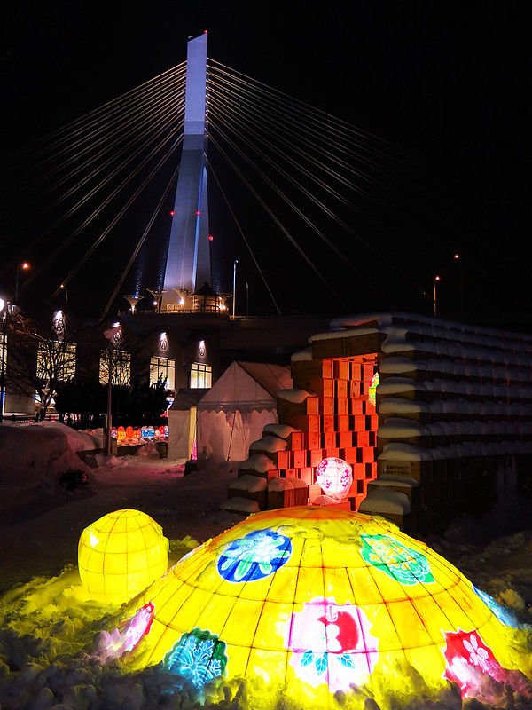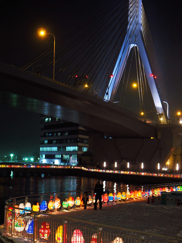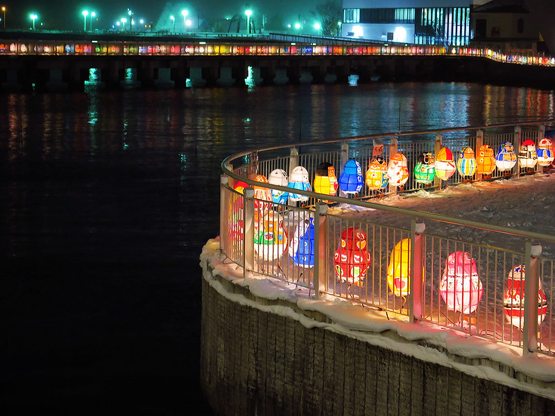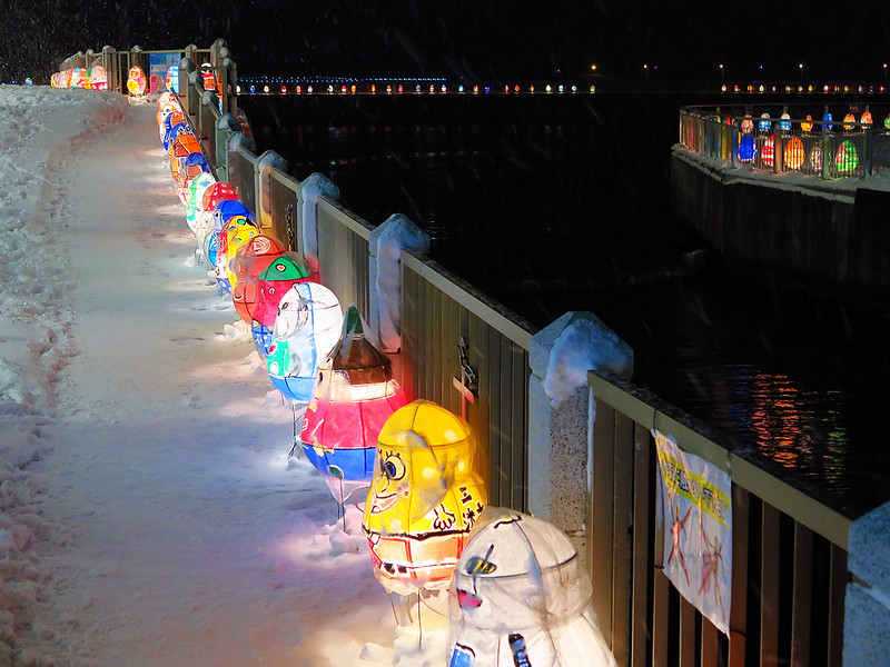 夜晚氣溫低於零下10度,我和小牛走出溫暖的旅館,頂著刺骨寒風瑟縮著身子,沿著青森灣遊歩道漫步,享受美麗紙燈營造的夢幻世界。