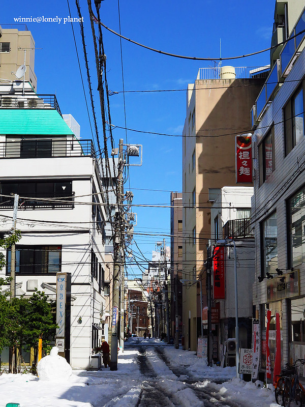 一早走出旅館京急EXイン浅草橋駅前,藍天一掃前晚的暴風雪