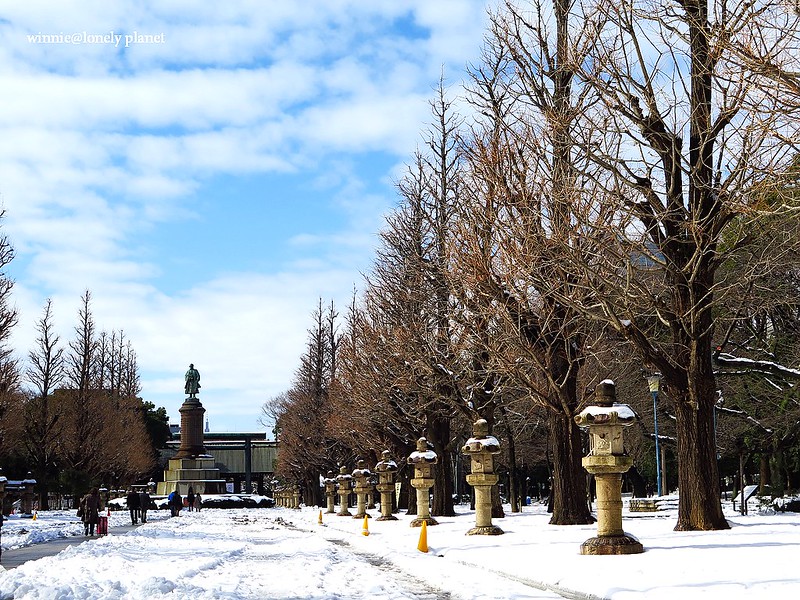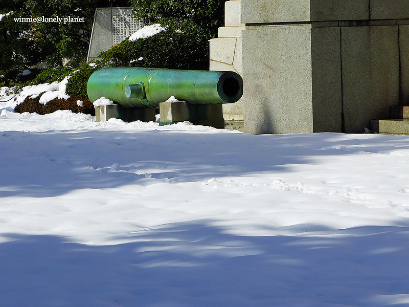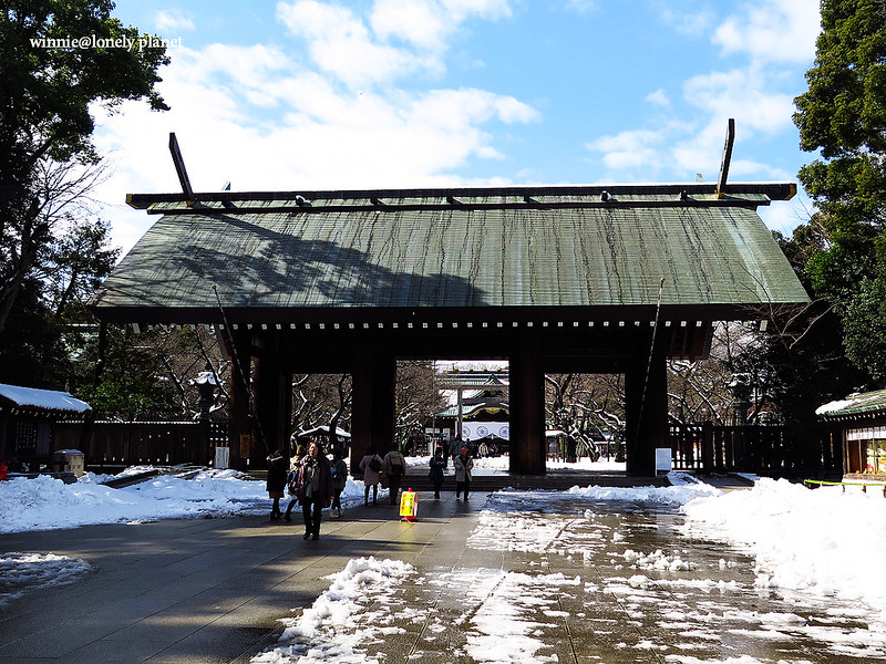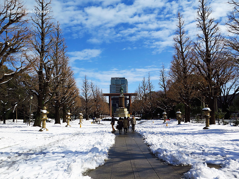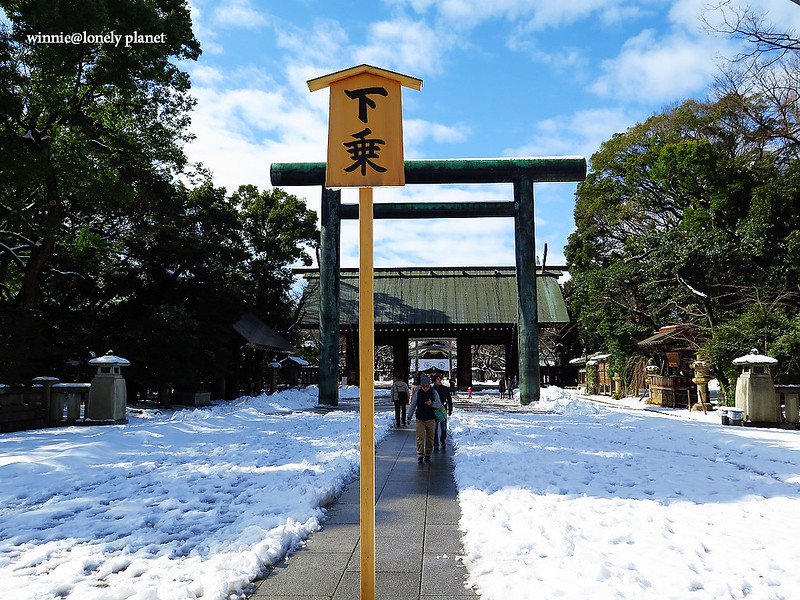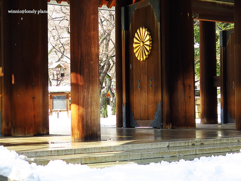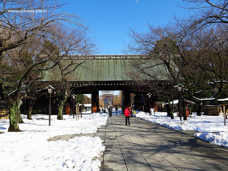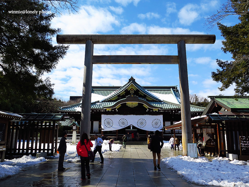 2014年2月8日從東北返回東京時,遇到關東20年來最強暴風雪,經過一晚肆虐,第二天早上一看,竟然放晴了,風雪初霽,彷彿甚麼事都沒發生過,但是滿地將融殘雪證實並非夢一場。傍晚即將搭機離日,為了好好利用僅存幾小時,決定去不遠處的靖國神社。逛一圈下來,時間根本不夠,只好留待下回!大力推薦靖國神社是一個非常值得參觀的景點。