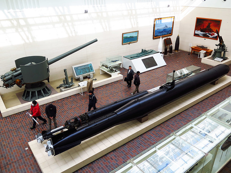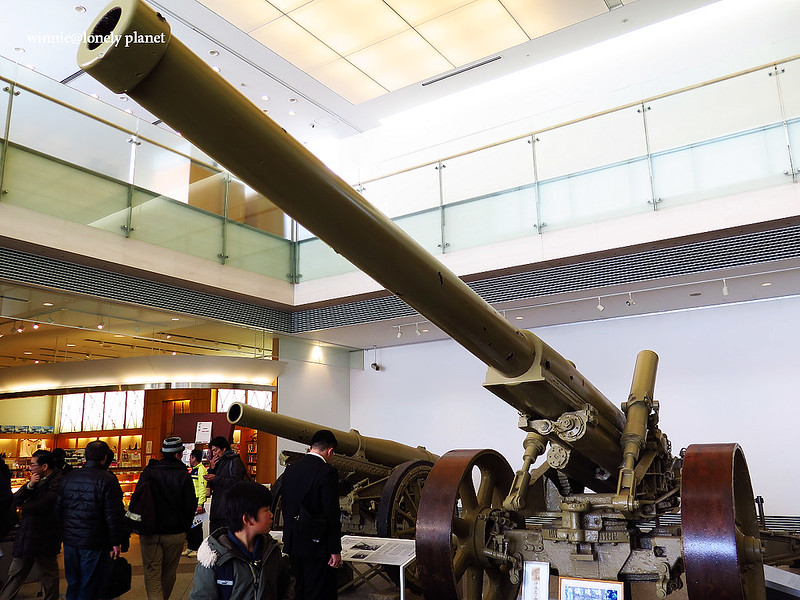 進大門後的一樓大廳有售票處、大型兵器展示、紀念品店,這裡的展示品皆可拍攝,