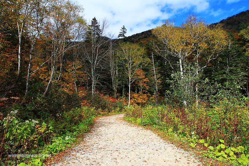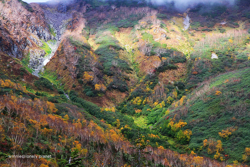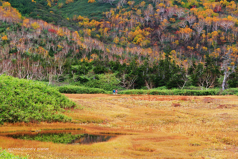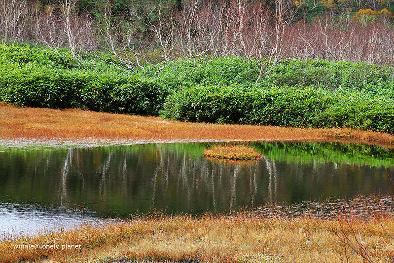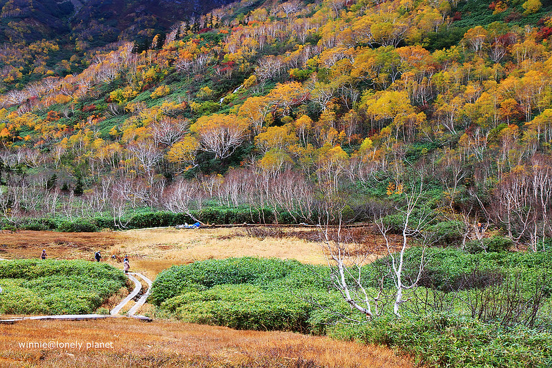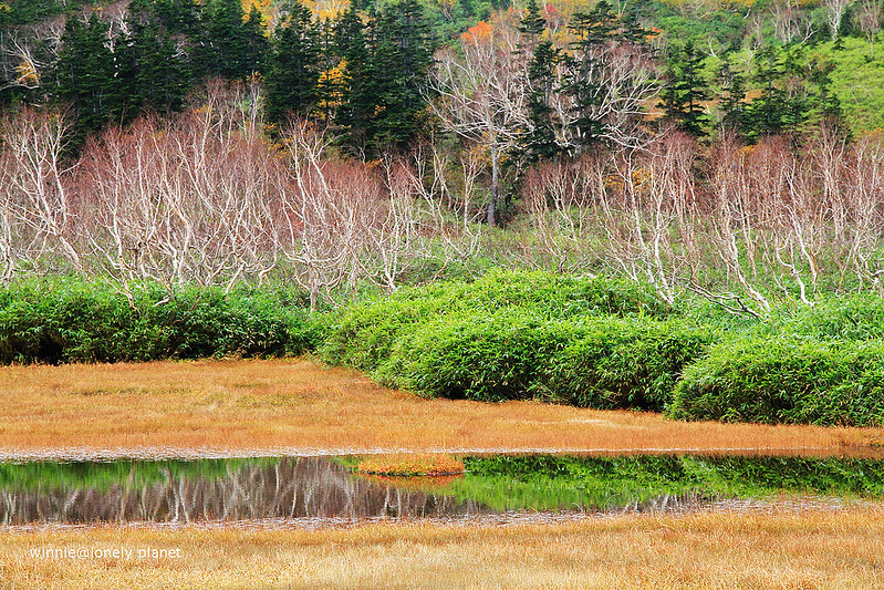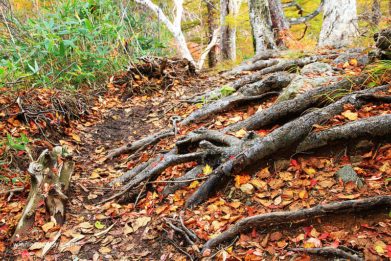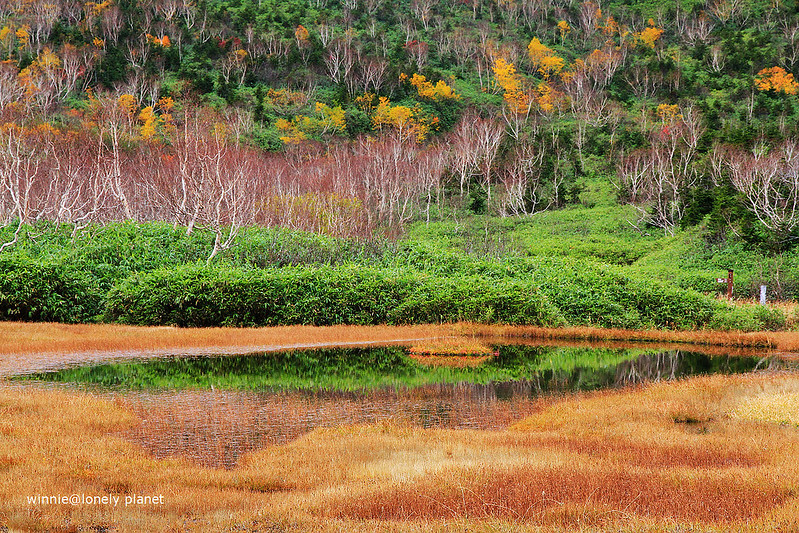 正如前面[2014秋信州放空之旅]所提,栂池自然園是遠赴白馬的兩大重點之一,為什麼會想來這處對多數台灣人陌生的景點?其實是有一次在旅遊雜誌上看到栂池自然園秋景,那片春花般紅艷的秋野彷彿一幅油畫,如實呈現「霜葉紅於二月花」之美,自此深植腦海,總是惦記著有一天一定要置身其中,這次總算成行,卻遇到颱風攪局。