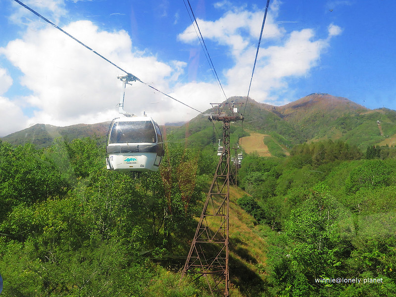 纜車分兩段,第一段以6人座小車箱運送,隨到隨搭,時間約20分鐘