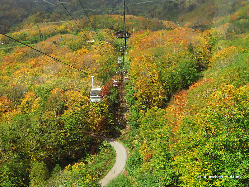 第一段從標高839公尺栂池高原駅坐到標高1582公尺栂之森駅,可慢慢飽覽美景