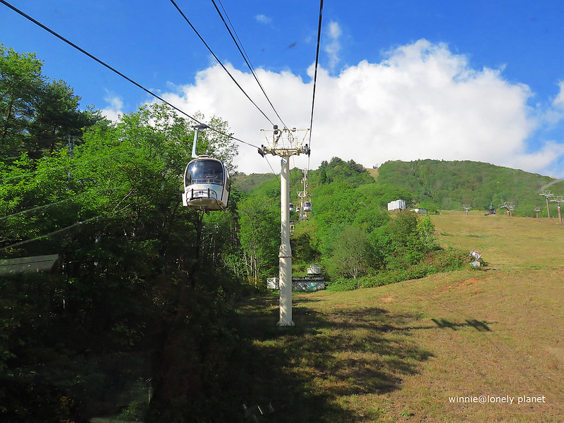 兎平-黒菱平搭無遮蔽輕型纜車約6分鐘,暴露在1400公尺空中還蠻刺激的,一旁有工作人員監看
