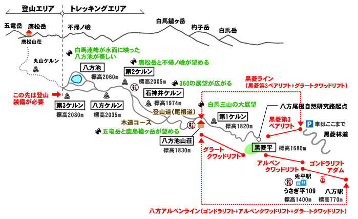 八方尾根自然研究路路線圖