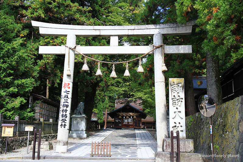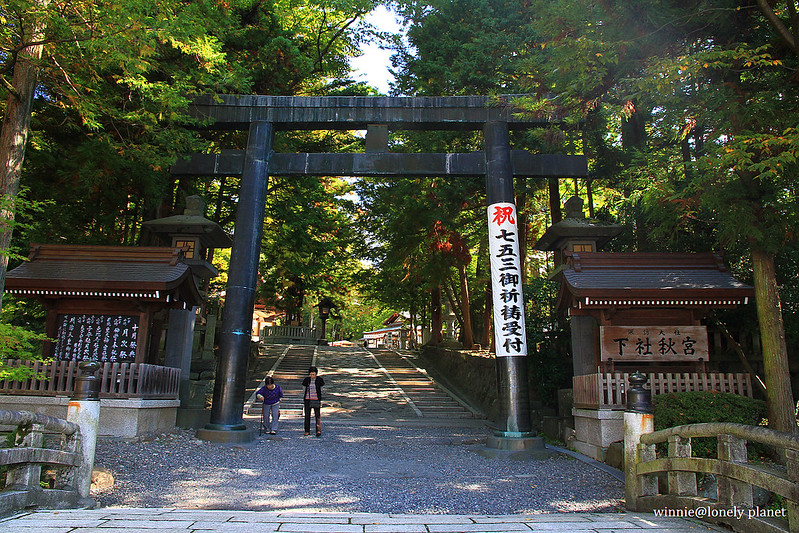 來到下諏訪當然不能錯過諏訪大社,諏訪大社是日本全國一萬多所諏訪神社的總本社,由2社4宮構成,圍繞諏訪湖周邊,2社是諏訪湖南側上諏訪的上社,及諏訪湖北側下諏訪的下社;上社又分為前宮和本宮,下社分為春宮和秋宮。我只有半天時間,就以中山道沿線的下社秋宮與春宮為目的地。