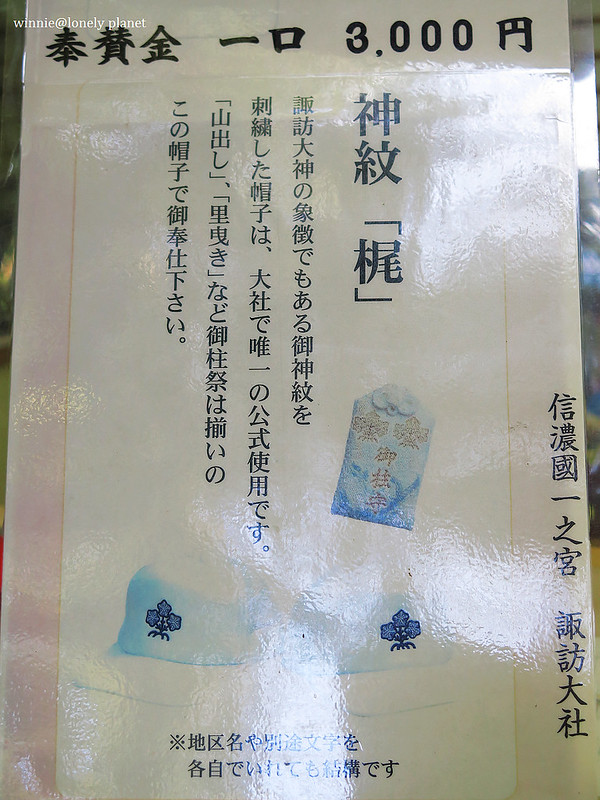 在秋宮和春宮隨處可見這個諏訪大社專屬神紋「諏訪梶の葉」
