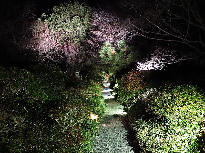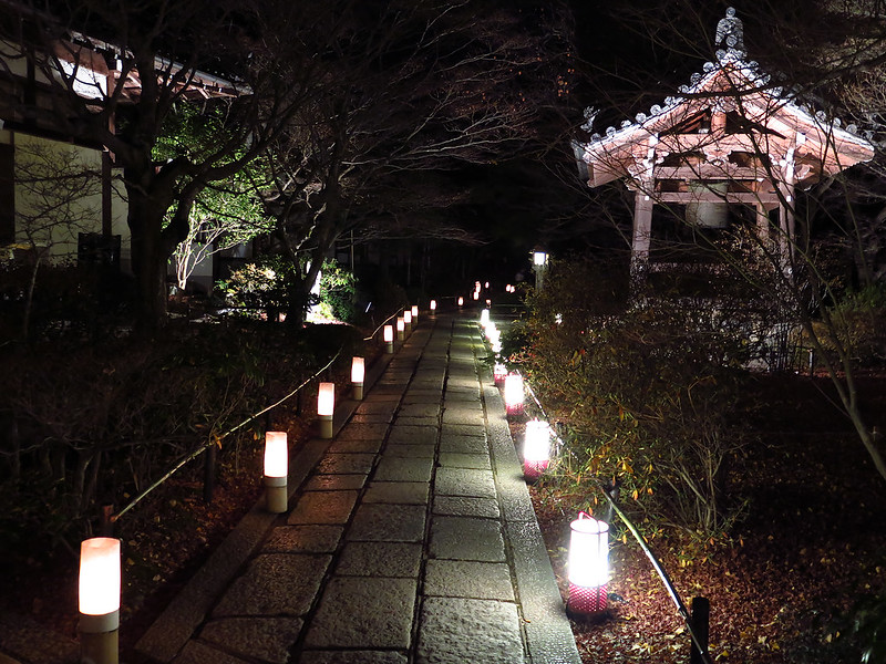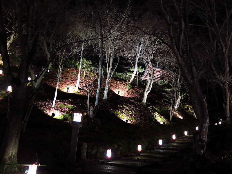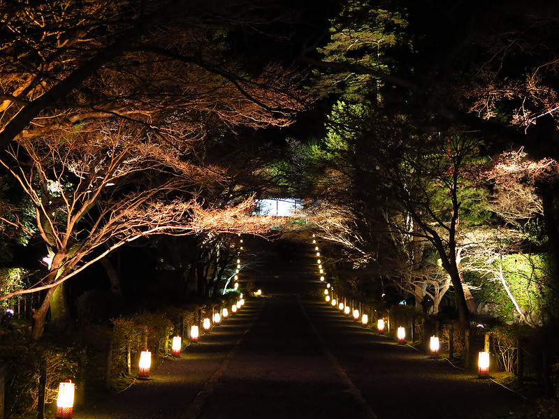 從野宮神社到大河內山莊步道兩側盞盞燈火,驅走黑夜的淒清