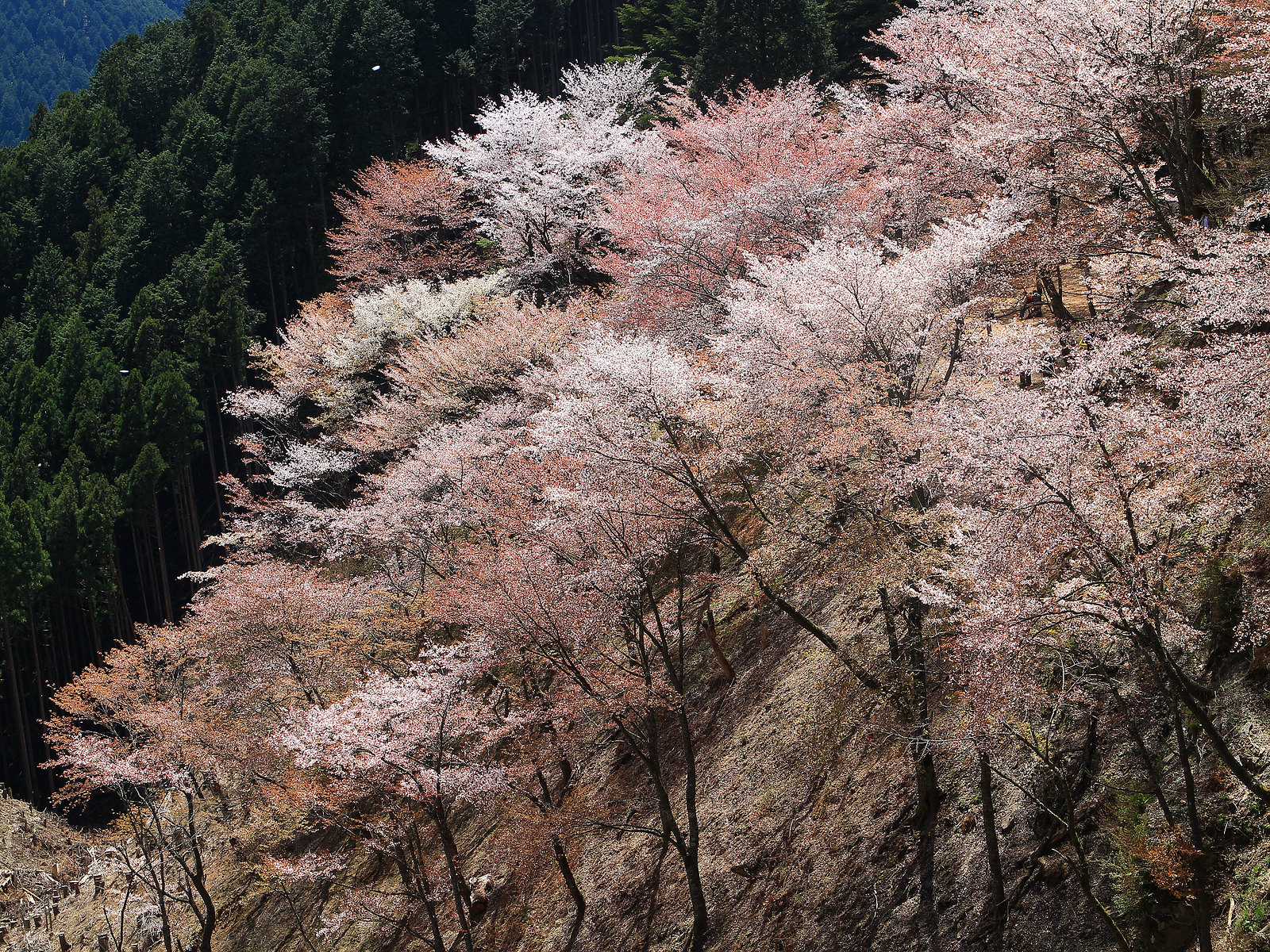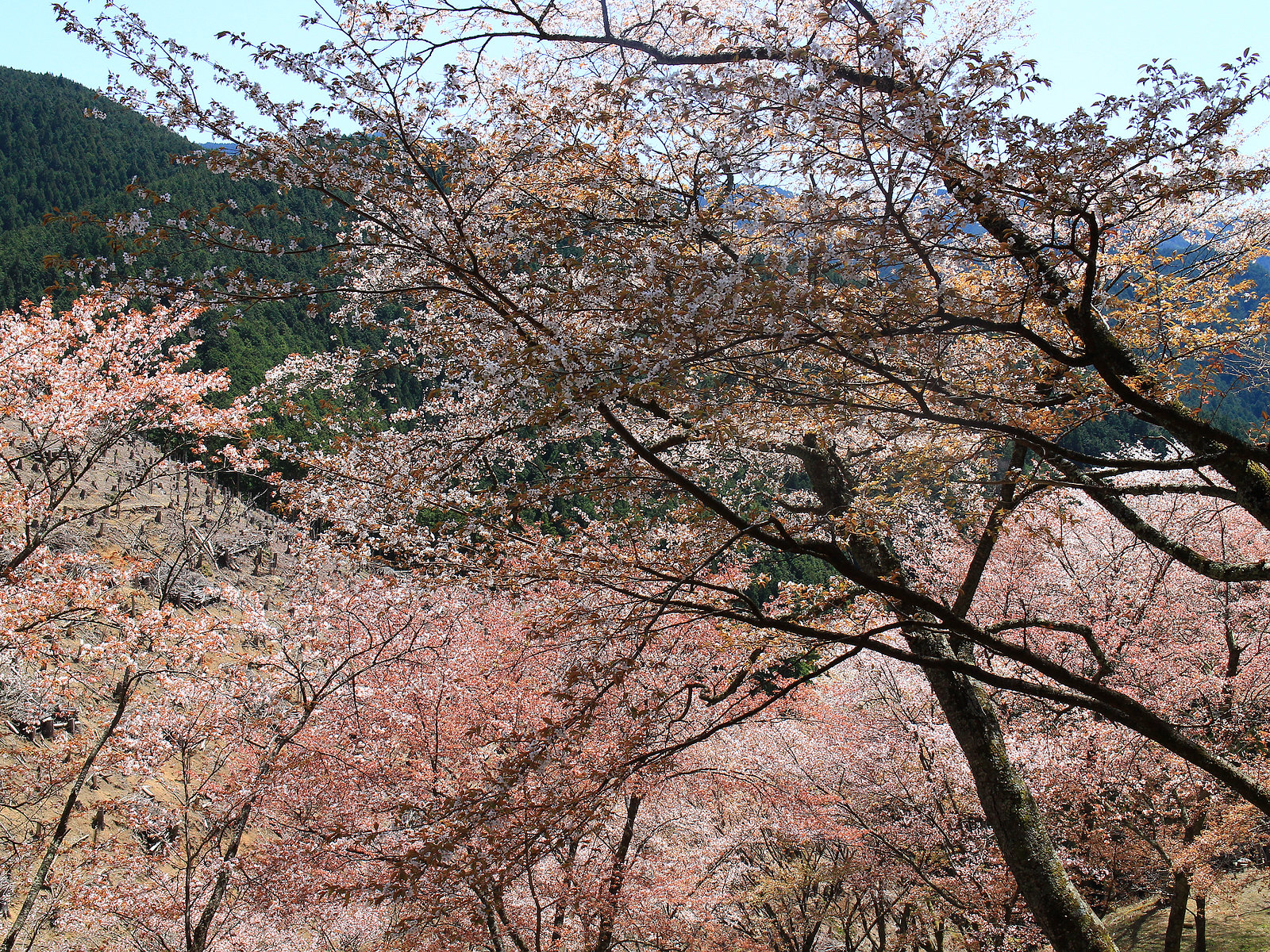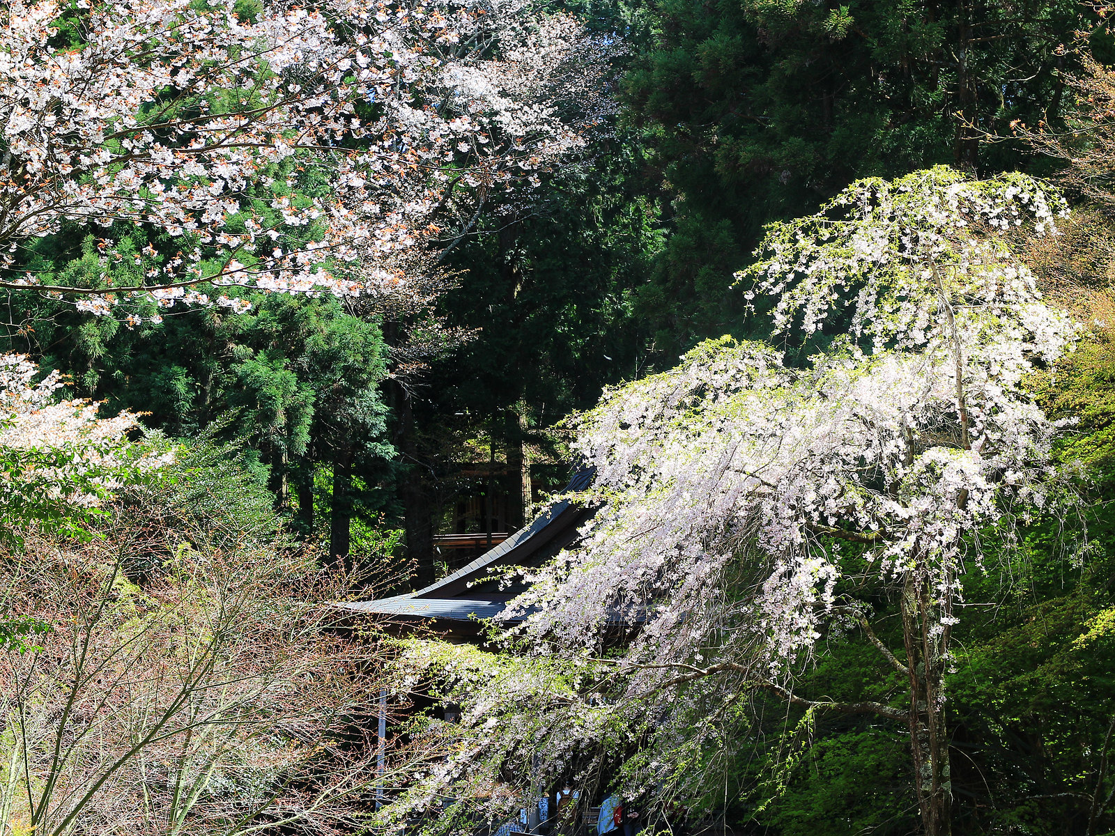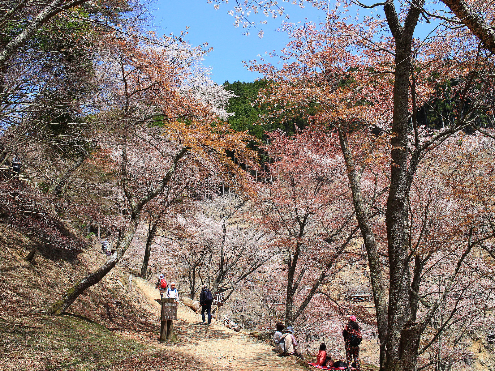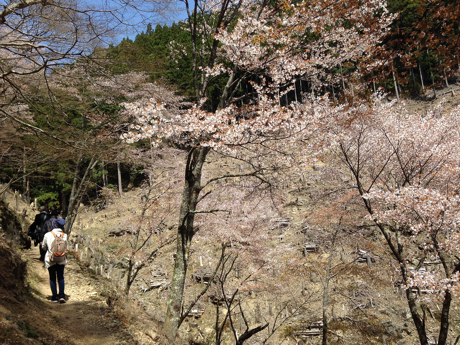 由於第一次拜見吉野山櫻花被大雨打敗,只前進到中千本,心中抱憾不已(見霧雨蒼茫的吉野山一目千本)。隔年晚春再度挑戰吉野山,此時下千本至中千本櫻花已盡數散落,只剩下上千本和奧千本尚能覓得櫻花蹤影,所以這趟目標就放在上千本和奧千本。