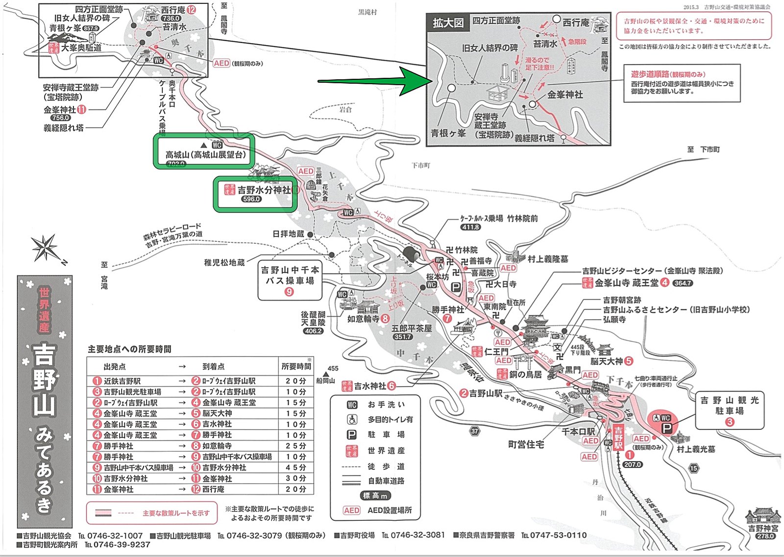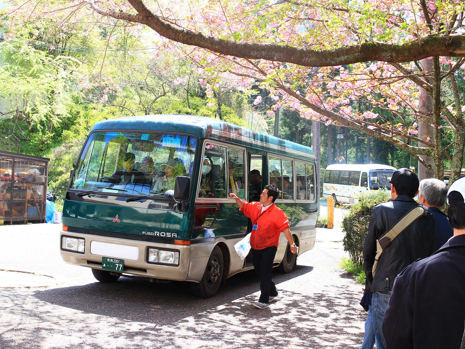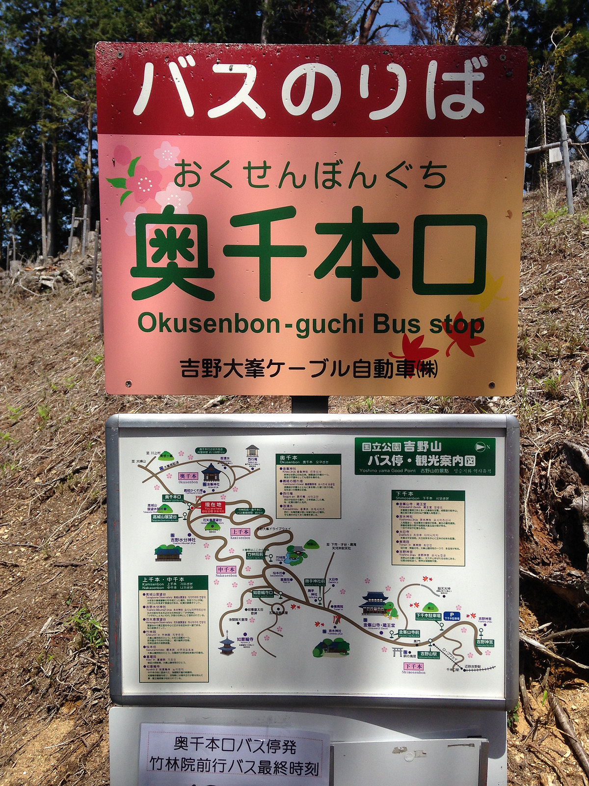 近鐵吉野站下車後,我不再像上回搭纜車上山,而是立刻跳上奈良巴士直奔奧千本(360円)。此時還在賞櫻交通管制期間,奈良巴士只行駛「近鐵吉野駅」~「中千本公園」間,中千本公園下車後走一小段山路到竹林院前巴士站換乘小巴士。由此去的交通隸屬另一家公司吉野大峯ケーブルバス,必須另外購票(400円) ,約10分鐘抵達奧千本。