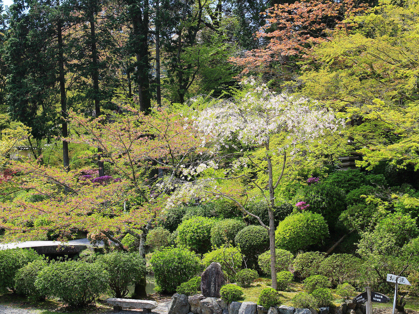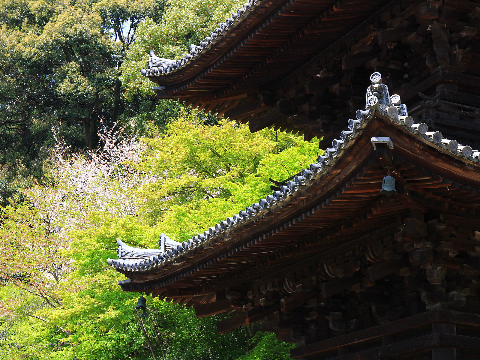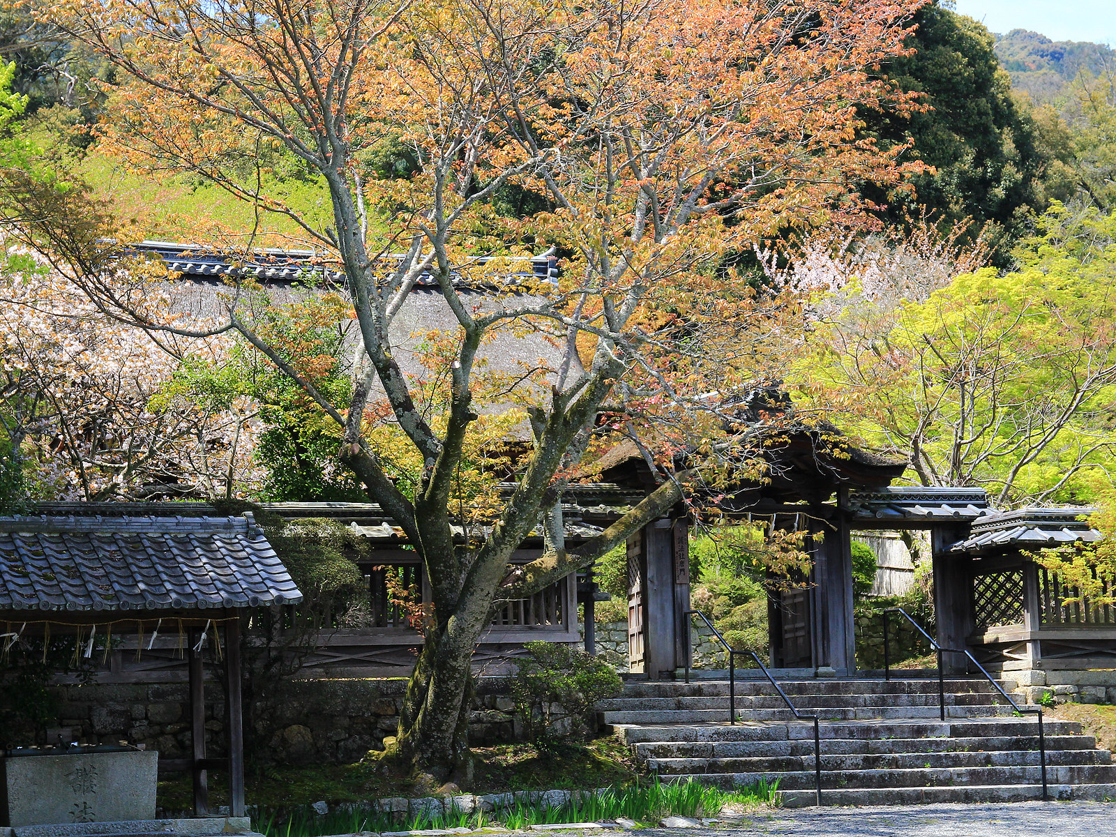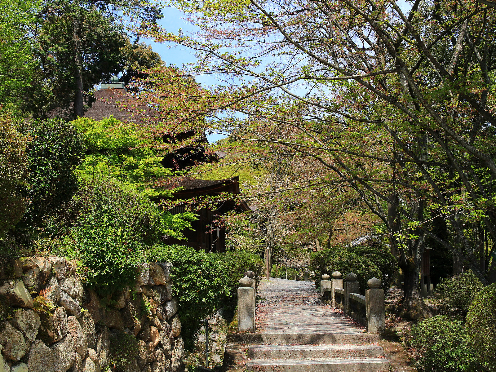 造訪三井寺時,正是櫻花已落入塵土化作泥的新綠時節,賞櫻人潮如潮水般退去,喧囂歸於平靜,甫自寒冬甦醒的楓葉展現清新翠綠身姿,帶來無窮活力與希望。