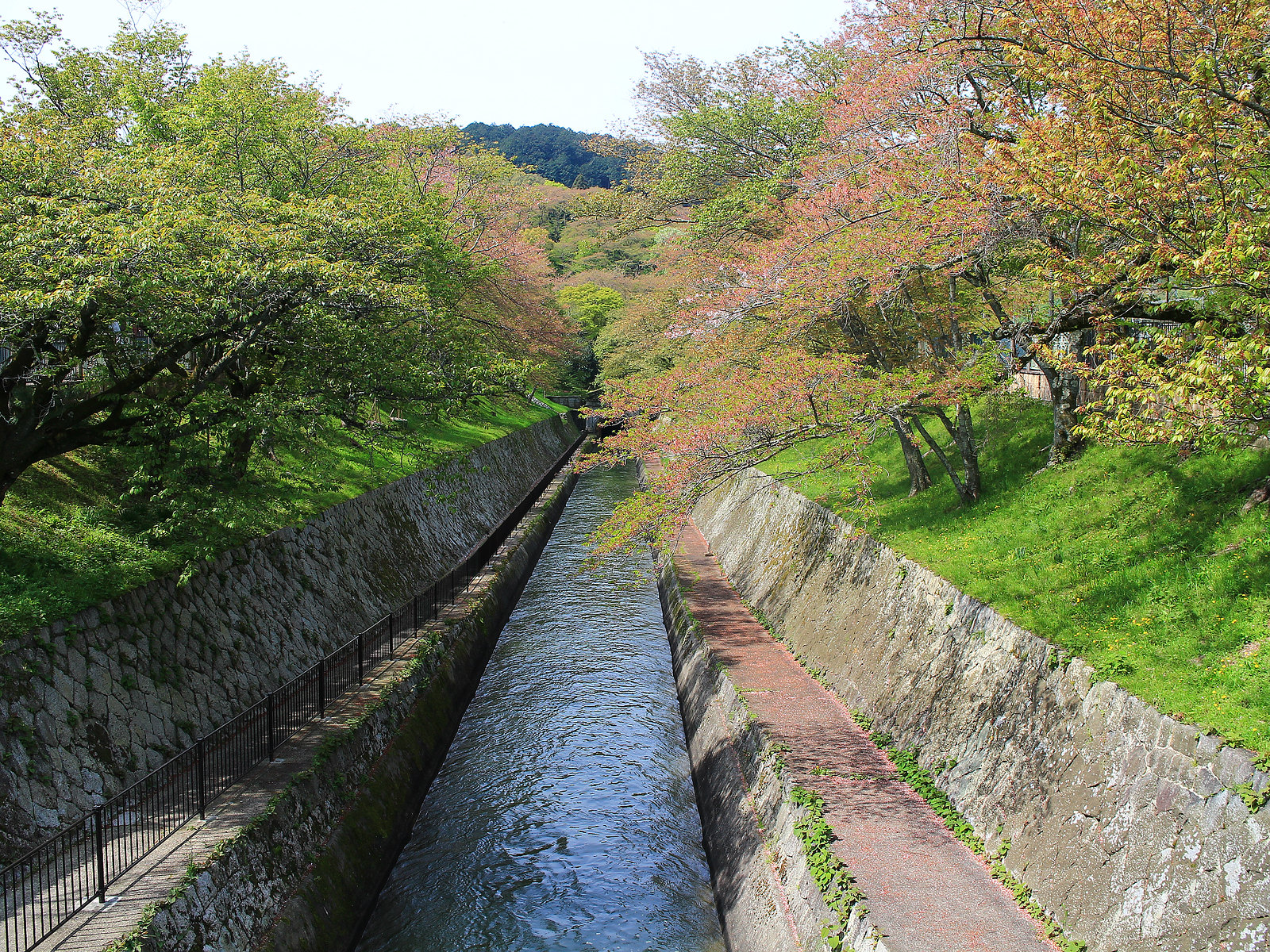去年賞櫻之旅與三井寺緣鏗一面,今年選在櫻季盛況過後再訪,京阪電鐵三井寺站下車後,和前一年一樣沿著琵琶湖疏水道緩步而行,週遭已煥然新綠。