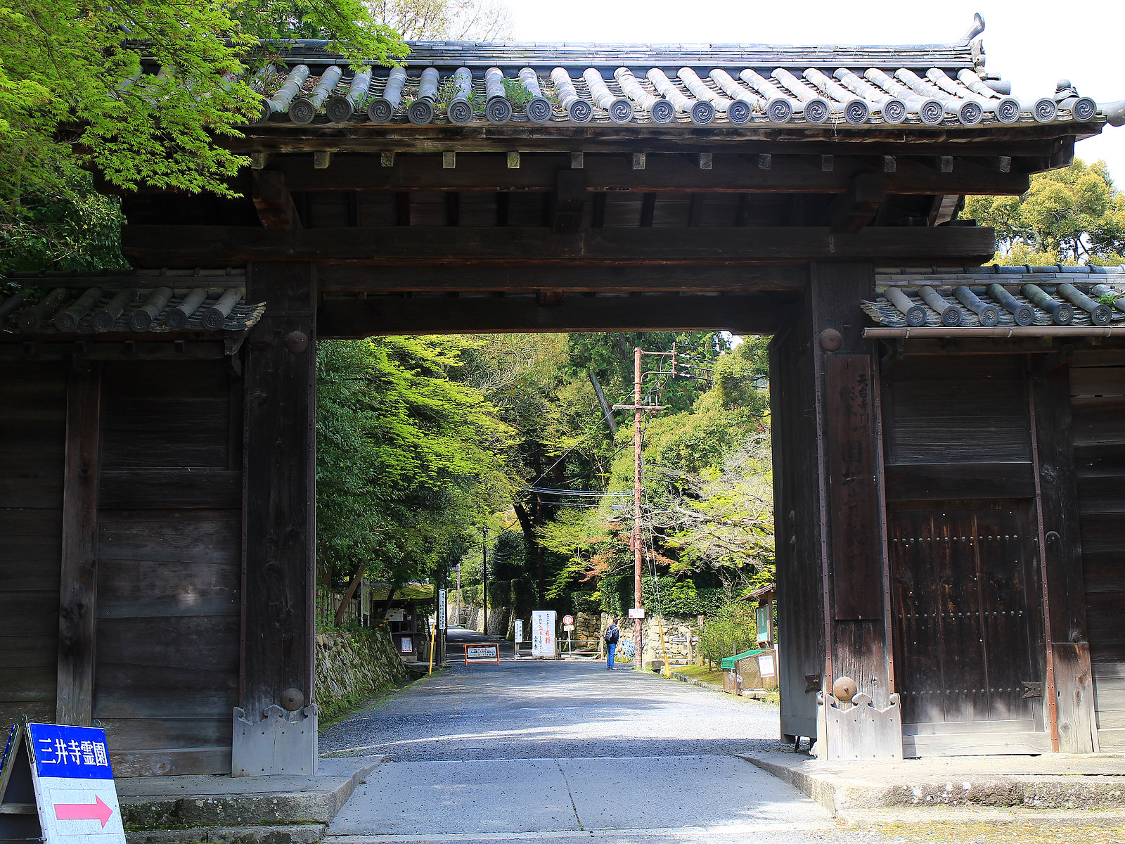 三井寺正式名稱為「長等山園城寺」,這座命運多舛古寺緣起,有一說是壬申之亂戰敗自縊而死的大友皇子之子大友與多王,為憑弔其父捐贈田園城邑蓋寺院,天武天皇賜名「園城」,即為園城寺。至於為何又叫三井寺,因為天智、天武、持統三天皇呱呱落地時都用這裡一池靈泉沐浴,所以稱「御井之寺」(御與三同音)。9世紀平安初期,比叡山延曆寺第5代天台座主圓珍再興園城寺,皇室、貴族、武家競相虔誠禮拜香火頂盛,當時它與東大寺、興福寺、延曆寺並列「本朝四箇大寺」。但是圓珍死後,其門徒與慈覺大師圓仁的門徒對佛教解釋互異而分裂成二派,圓珍派下山入三井寺另成「寺門派」,留在比叡山的圓仁派稱作「山門派」,自此雙方壁壘分明。歷史上兩派多次嚴重衝突加上源平爭亂、南北朝之亂等,三井寺諸伽藍皆遭受波及焚毀,幸好事後都得當權者力挺重建。