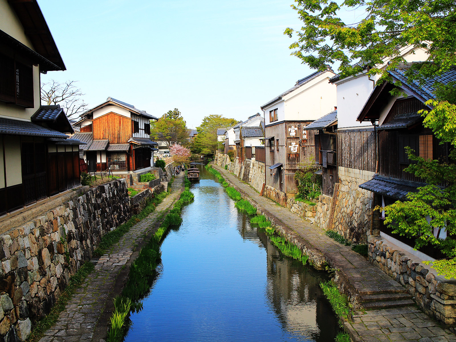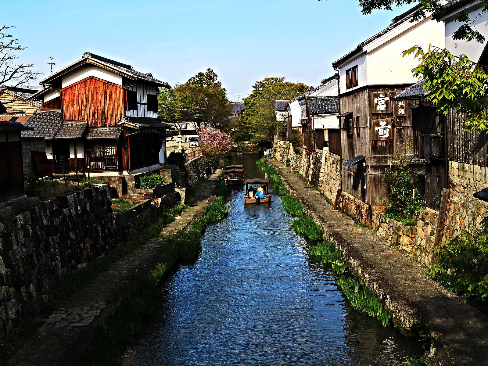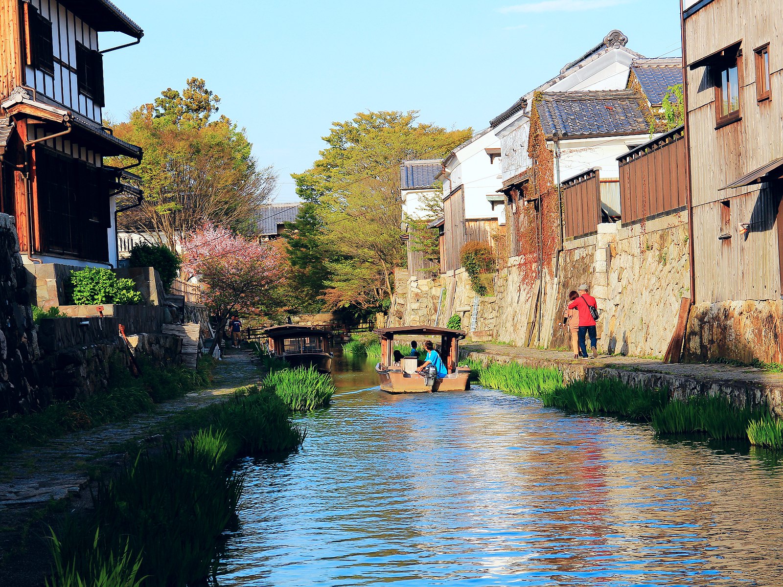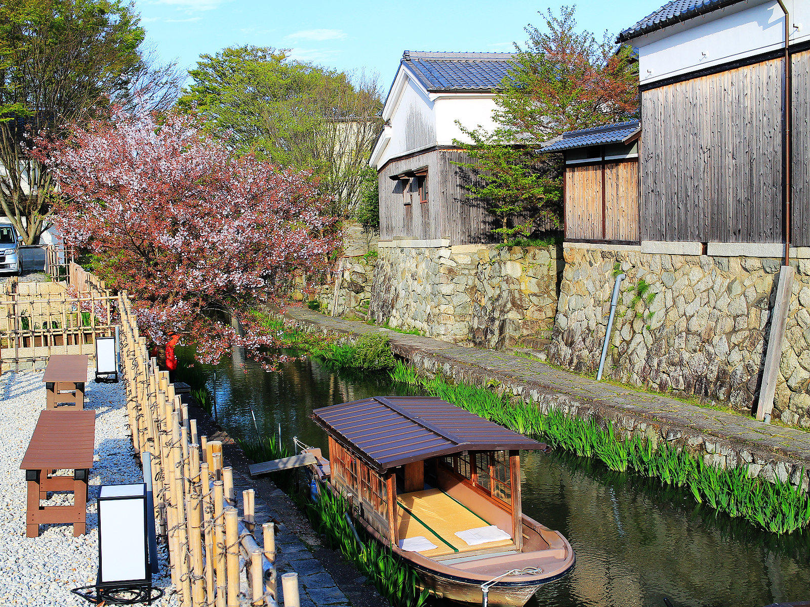 河道兩旁町家傳統建築與土藏白壁櫛比鱗次,散發江戶時代風情