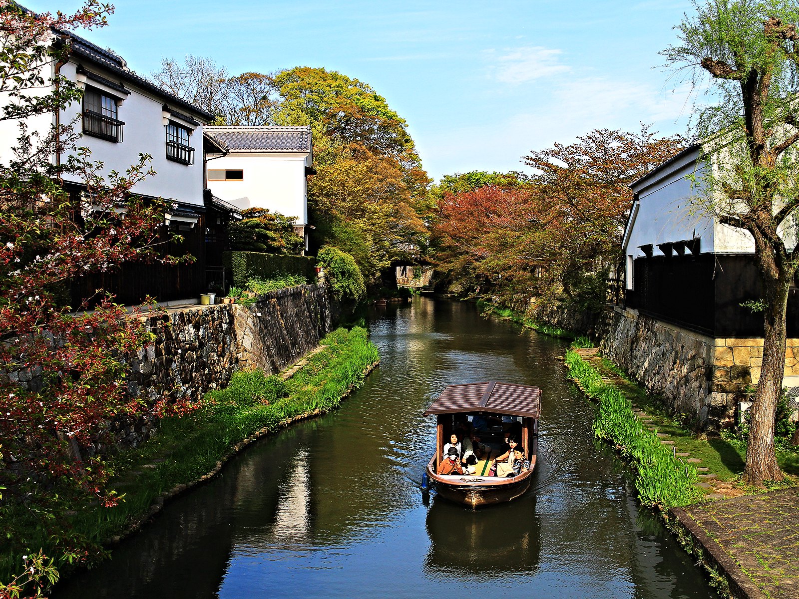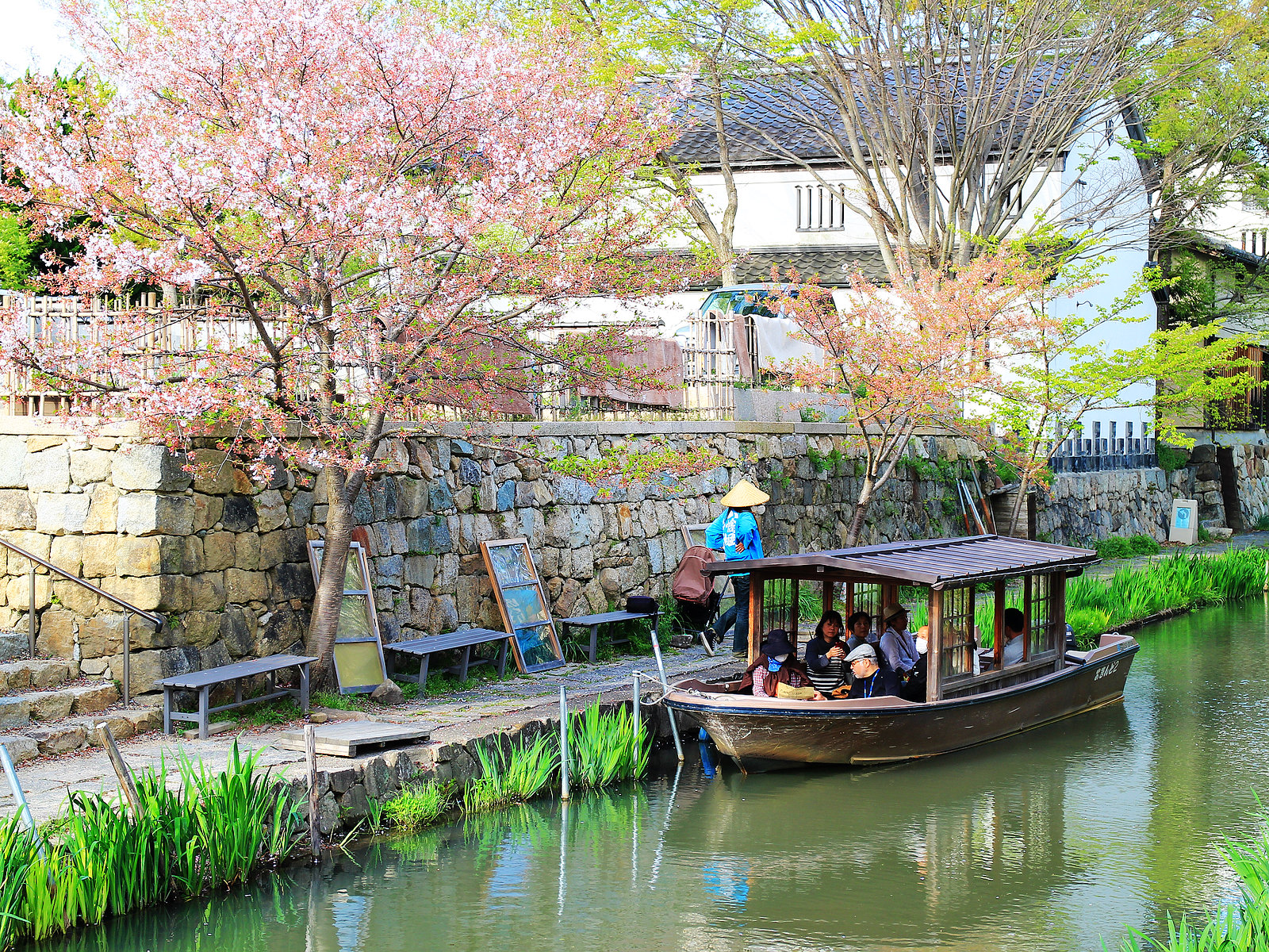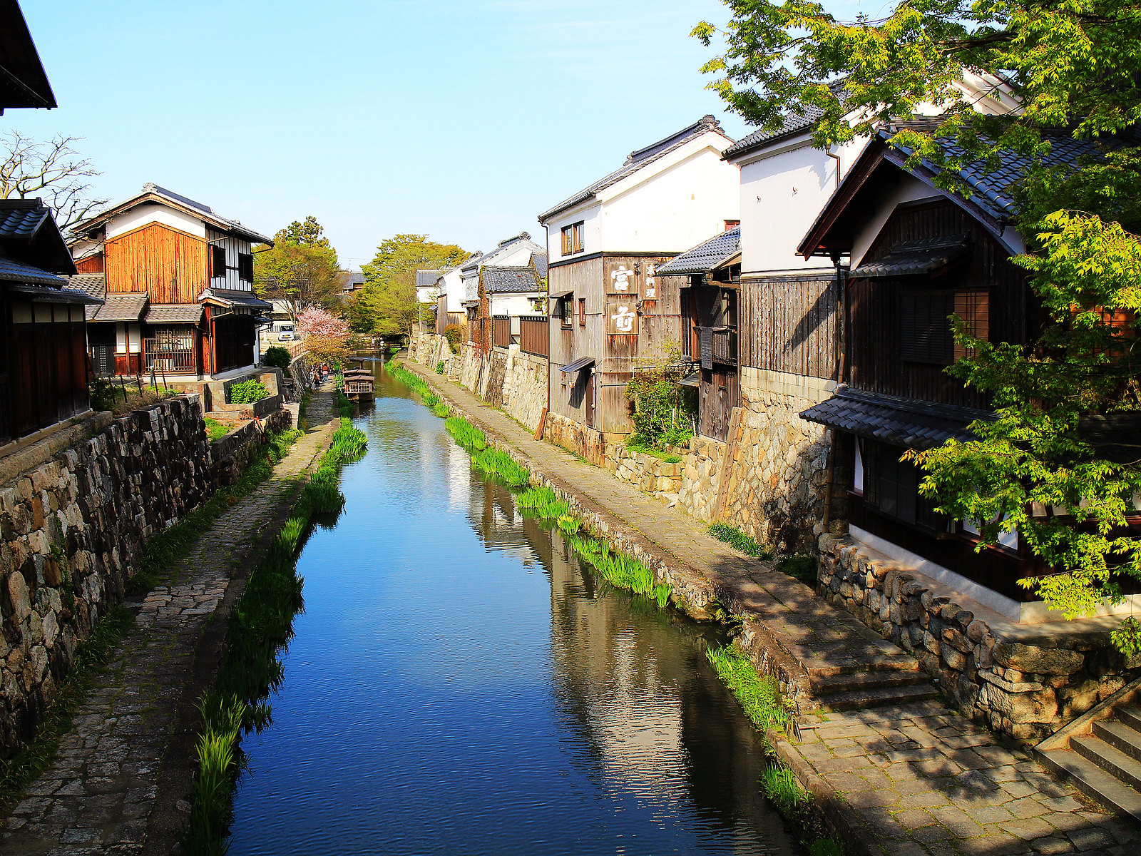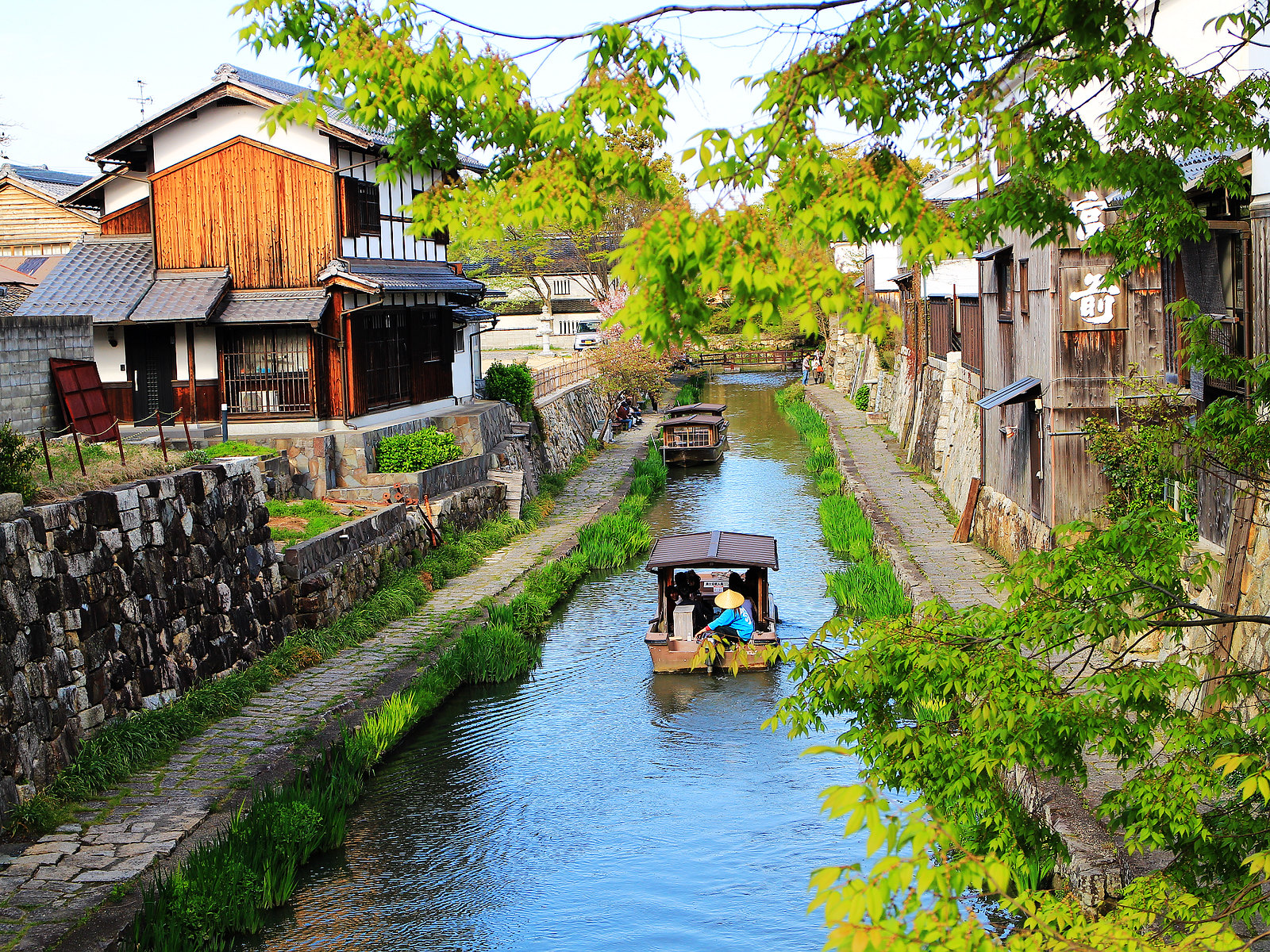 河道兩旁町家傳統建築與土藏白壁櫛比鱗次,散發江戶時代風情