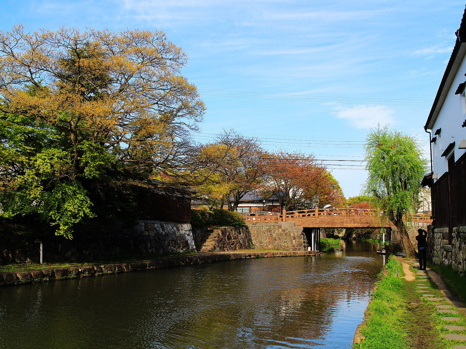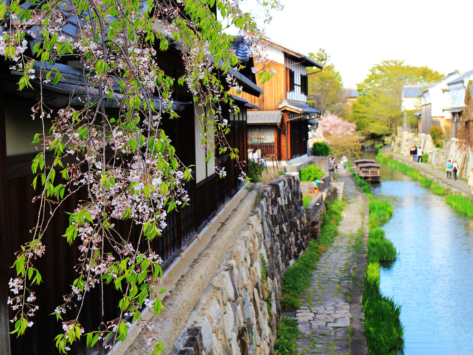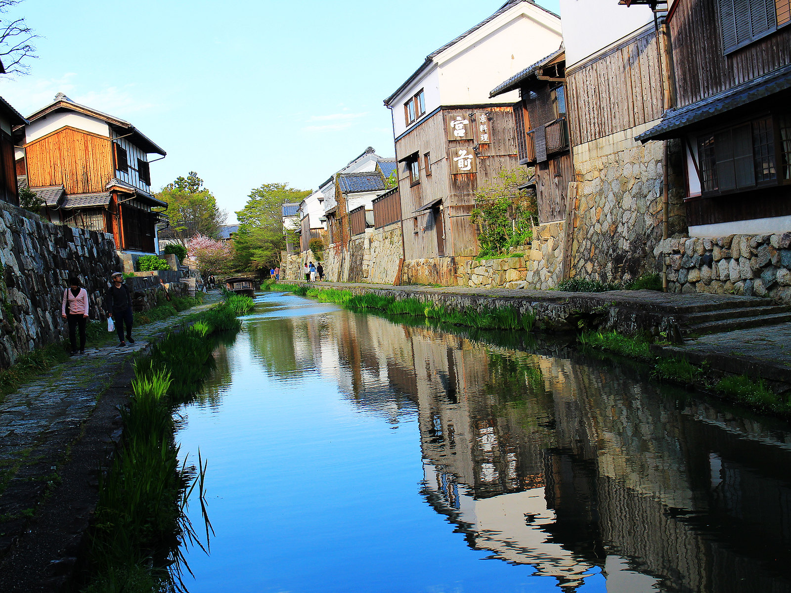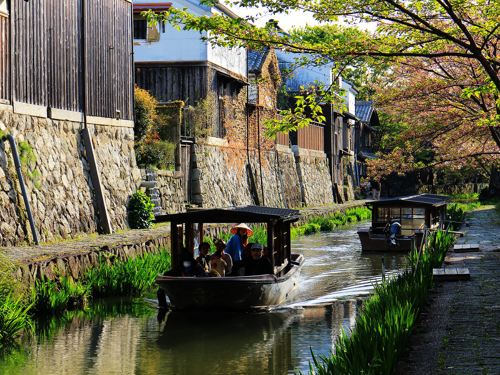 河道兩旁町家傳統建築與土藏白壁櫛比鱗次,散發江戶時代風情